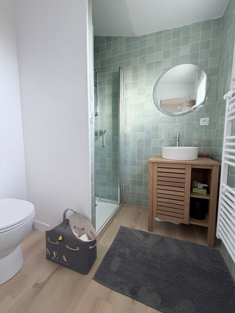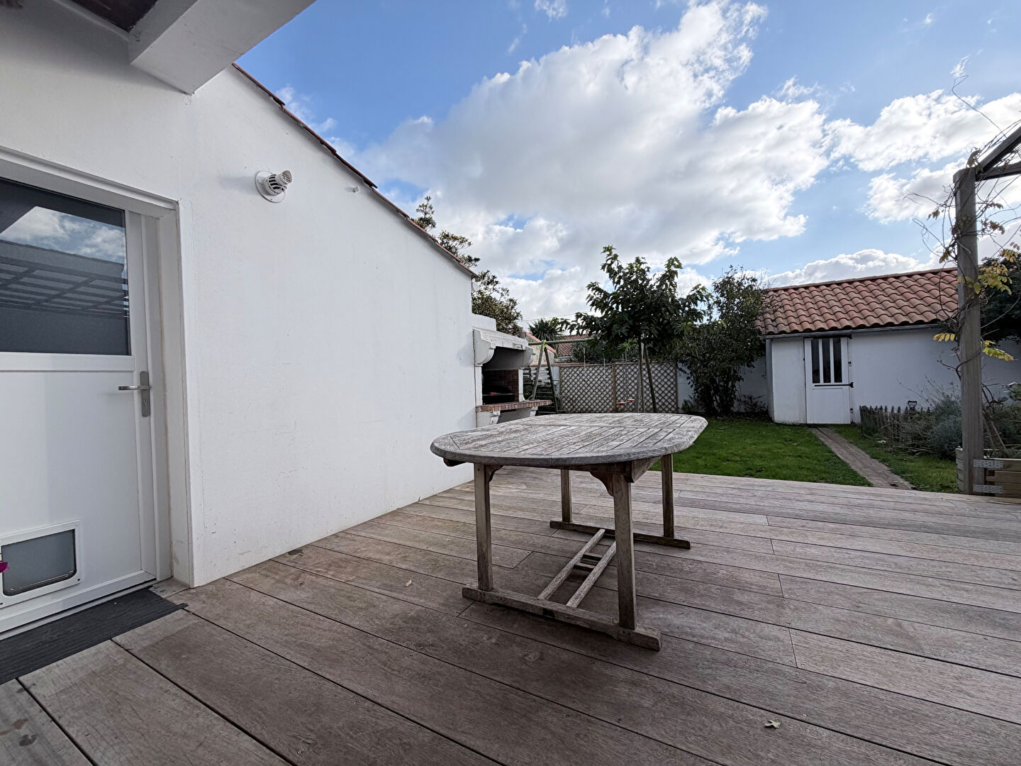Egalement terrasse, jardin sans vis à vis et garage avec bureau.