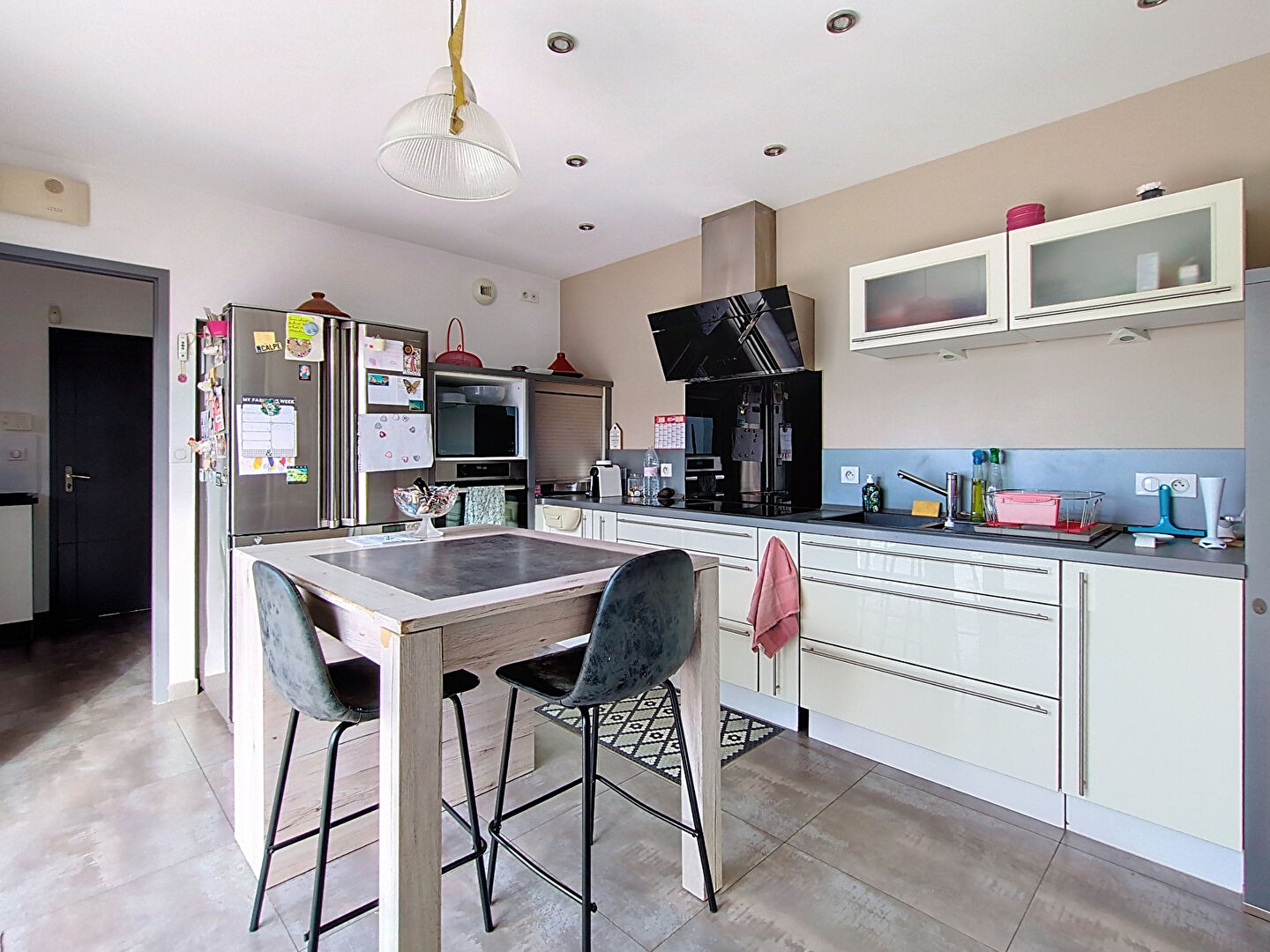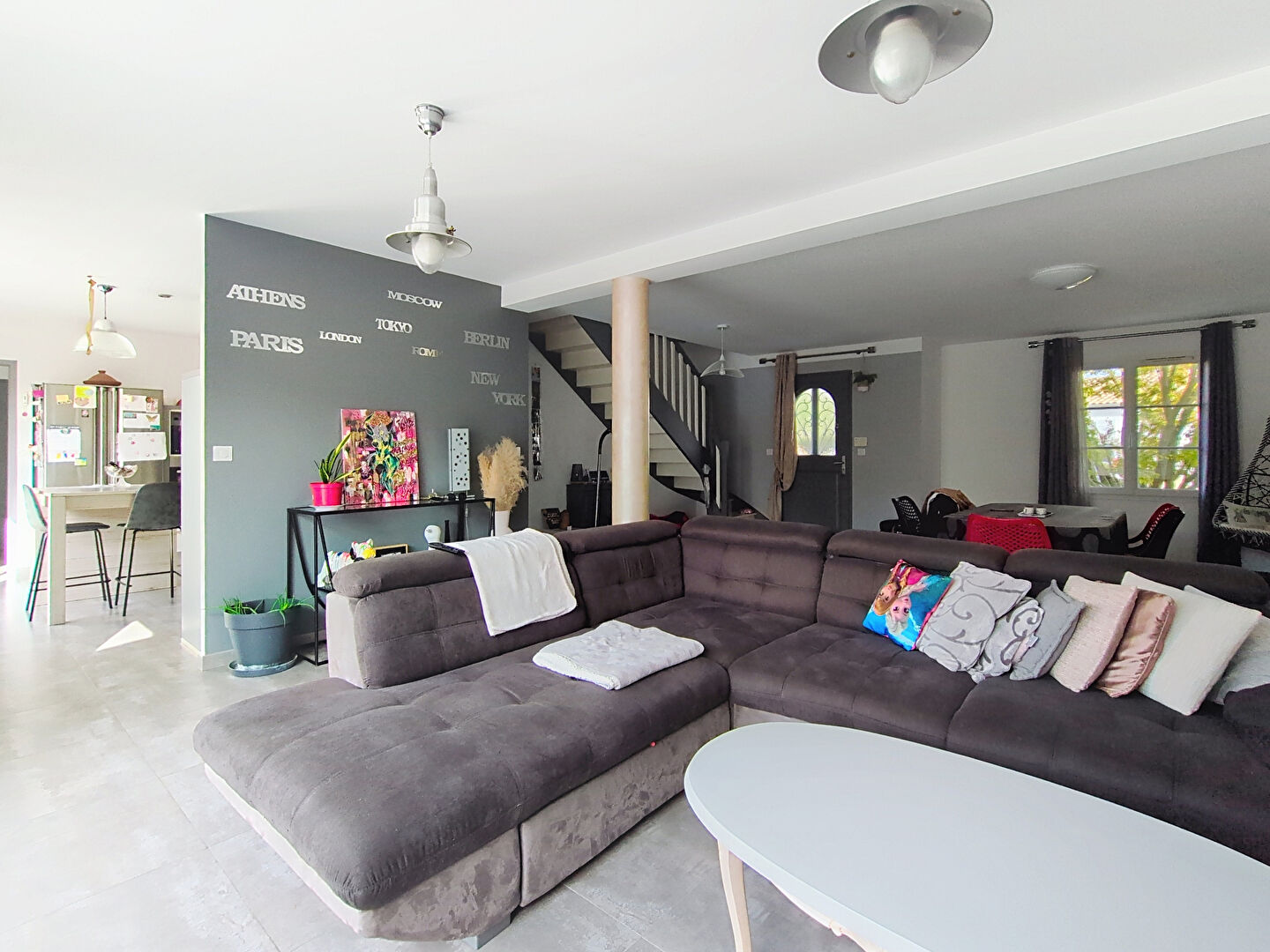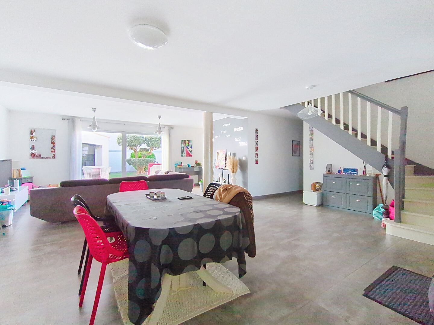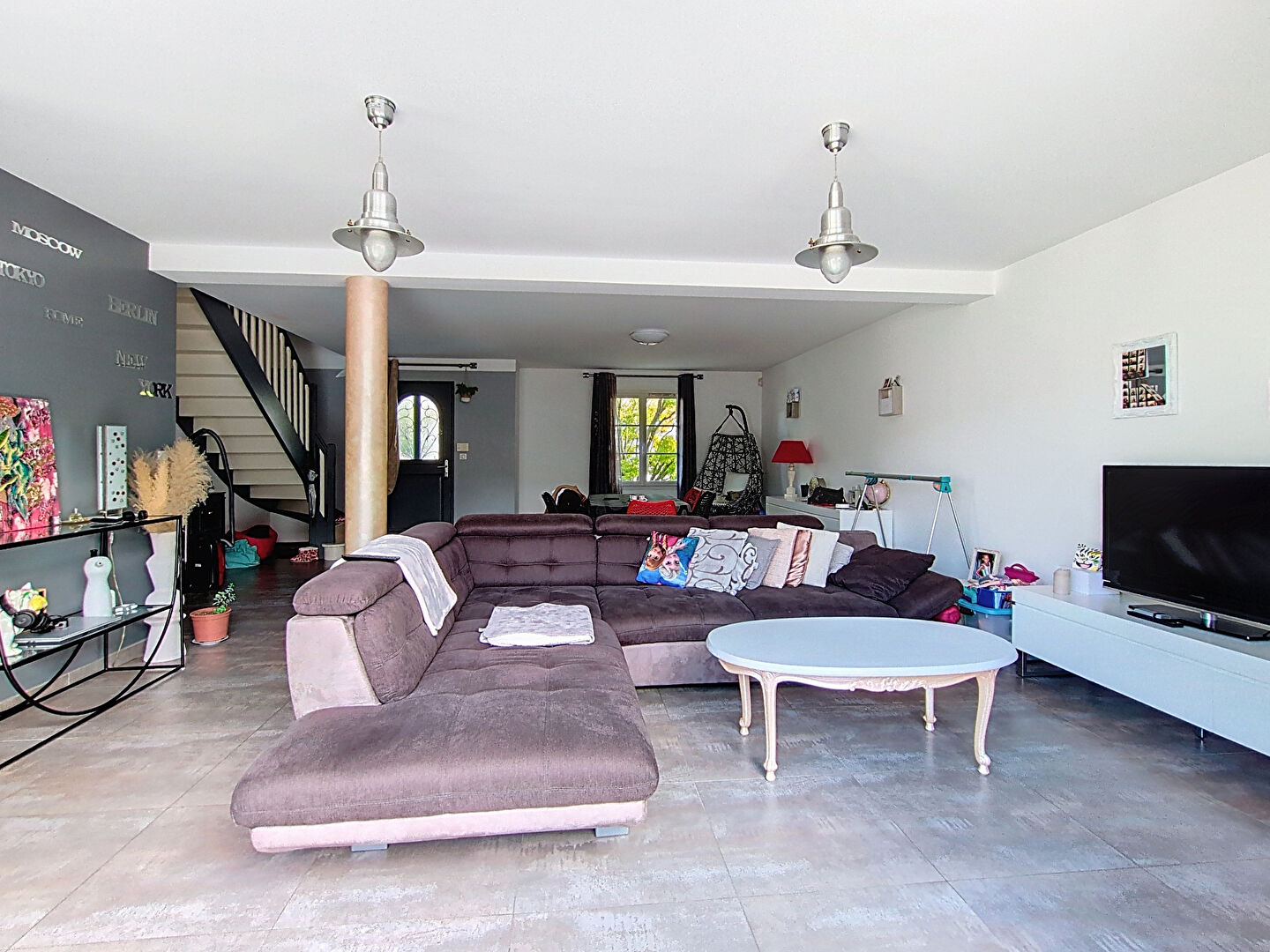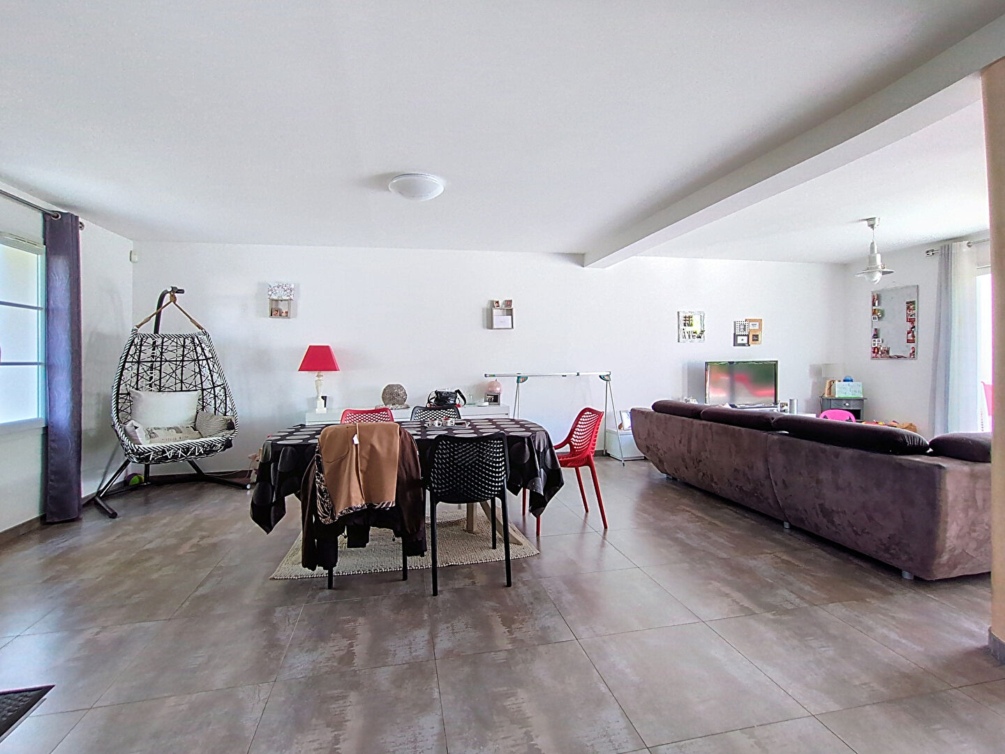 Cette maison de 2009 réalisée avec des matériaux de qualité se compose au rdc d'une vaste entrée, une salle à manger et un salon, la superficie de cette pièce de vie est de 50m², d'une cuisine semi ouverte entièrement équipée, d'une arrière cuisine avec gazinière et évier, d'un grand garage traversant avec galetas, d'une chambre avec placards et d'une salle d'eau avec WC.