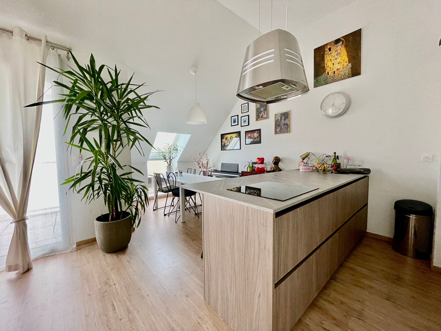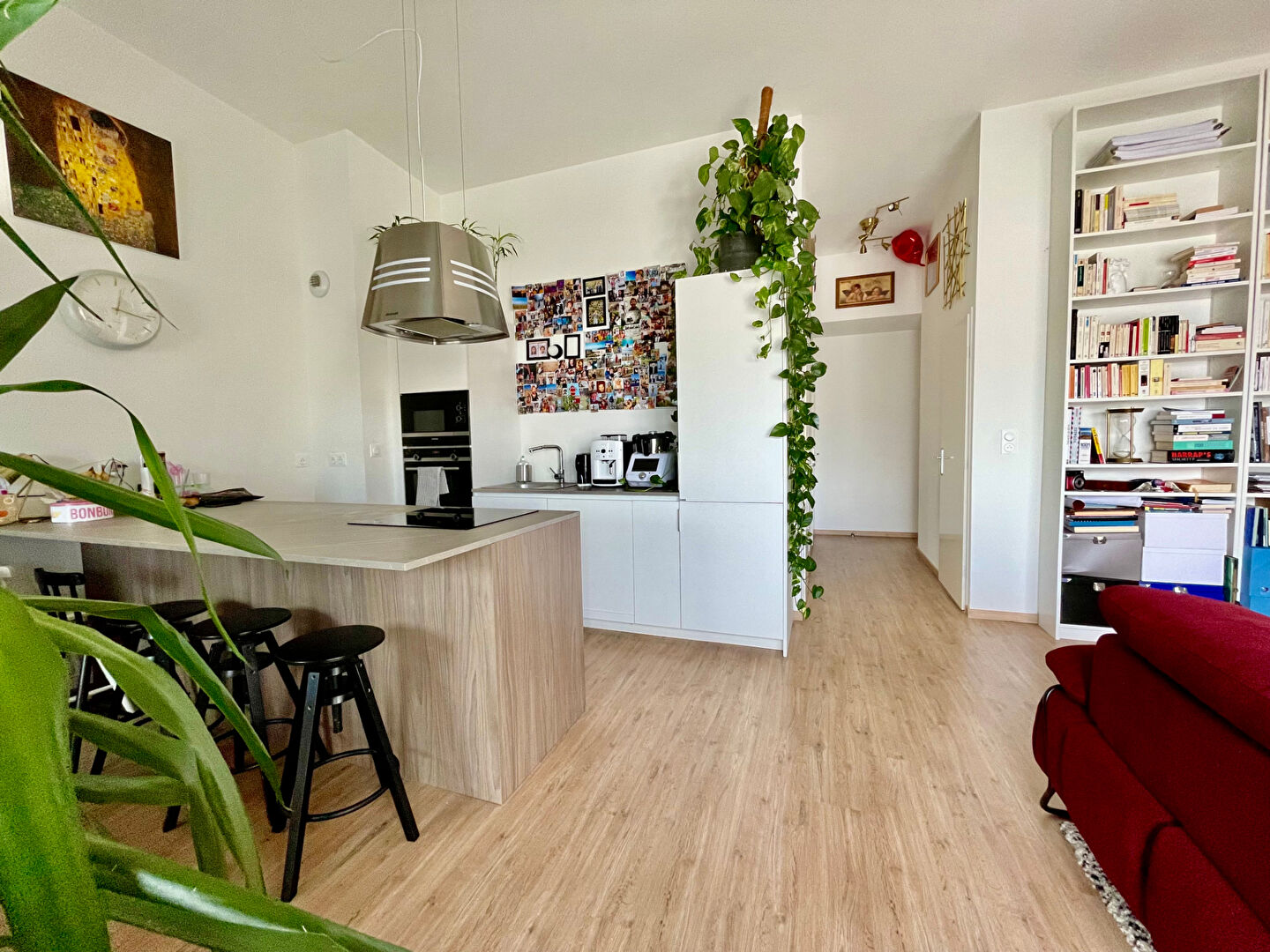 Dotée d'une belle hauteur sous plafond, agréable pièce à vivre avec cuisine équipée et aménagée ouverte sur le salon et la salle à manger, et donnant accès à une terrasse extérieure.