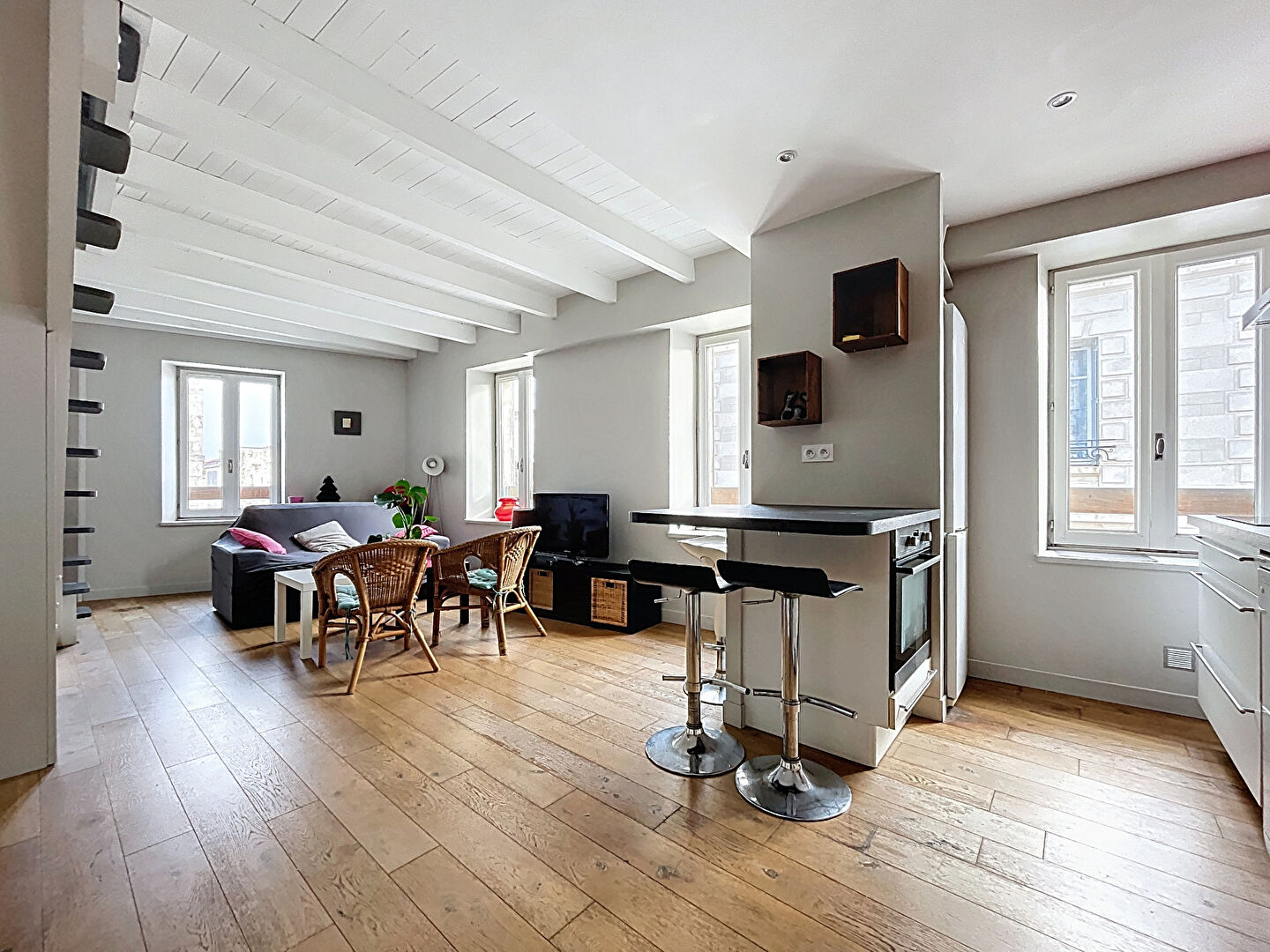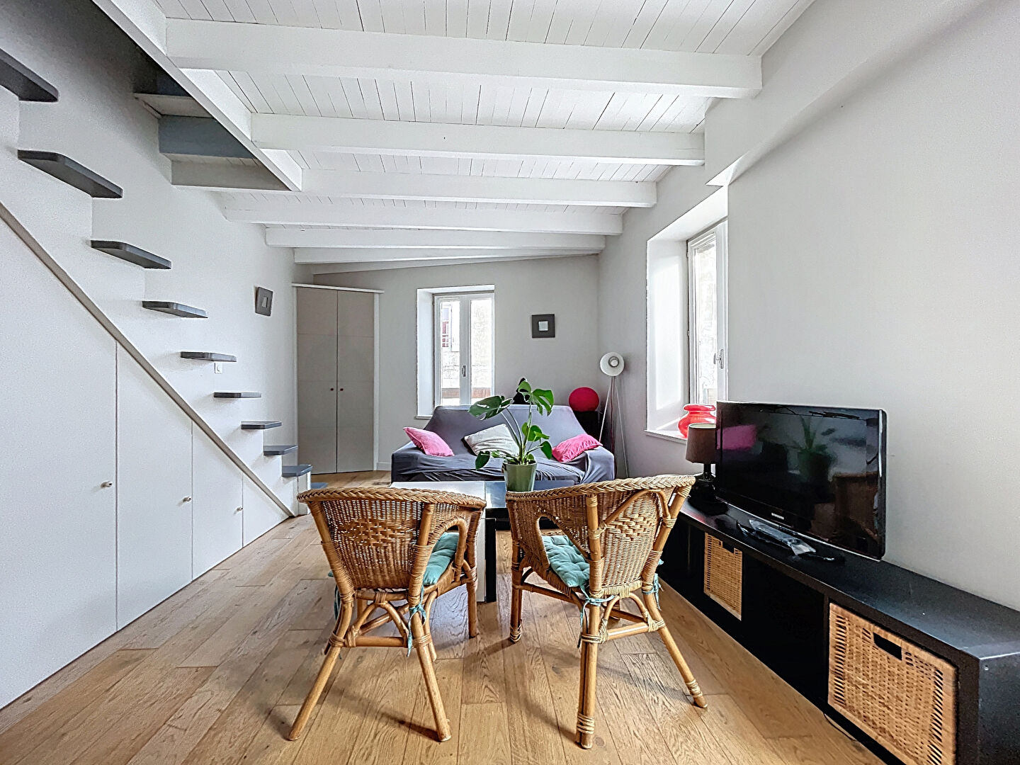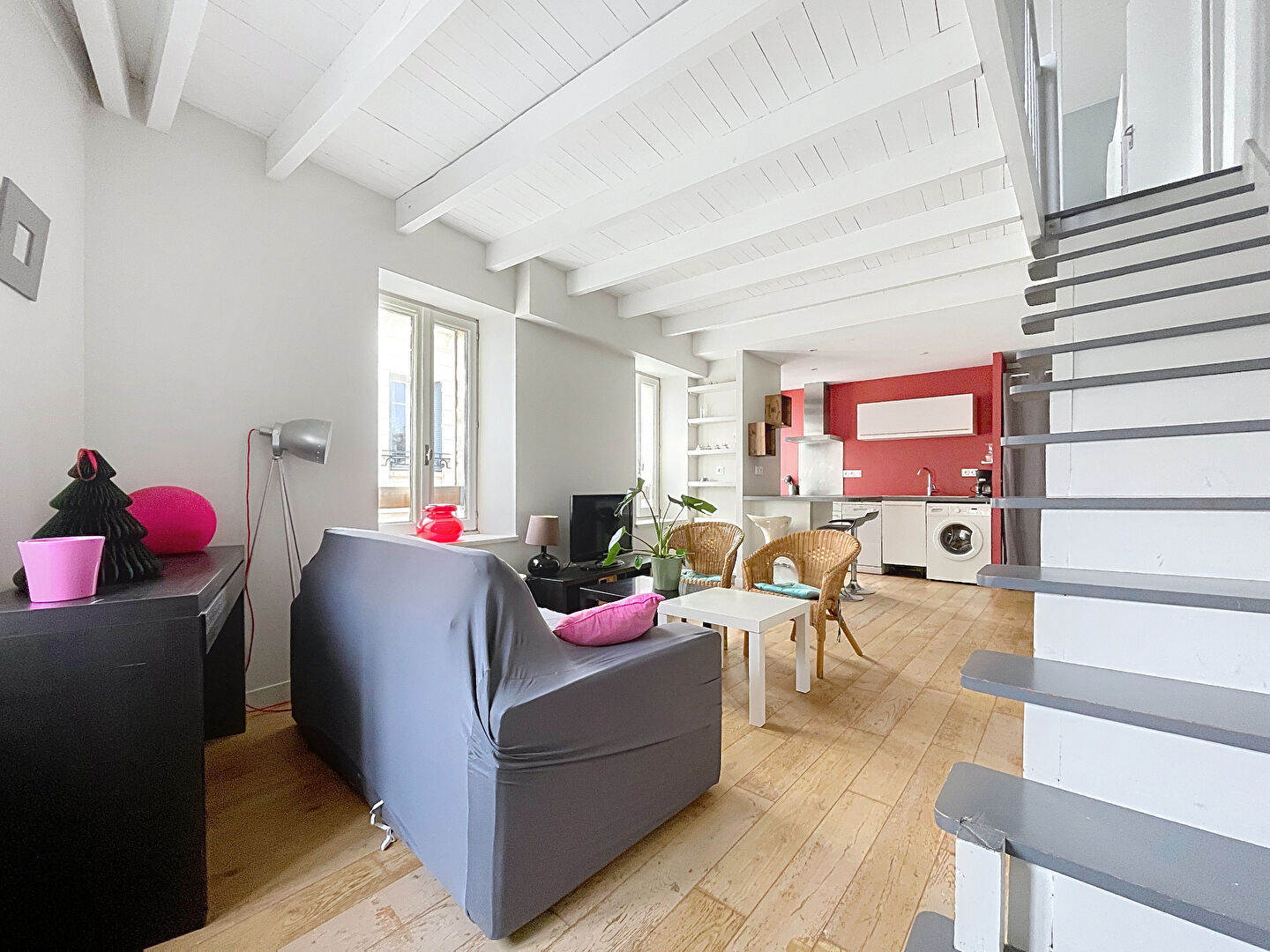 Découvrez ce superbe appartement T3 en duplex situé aux 2ème et 3ème (et dernier) étages d'une petite copropriété.