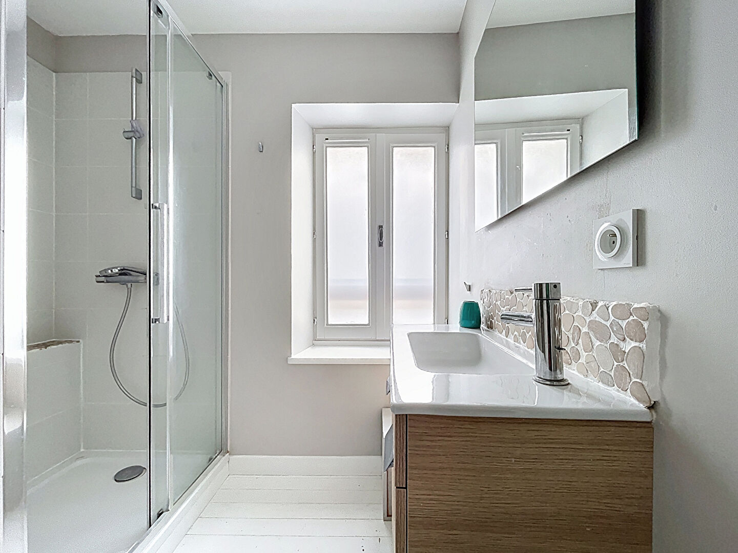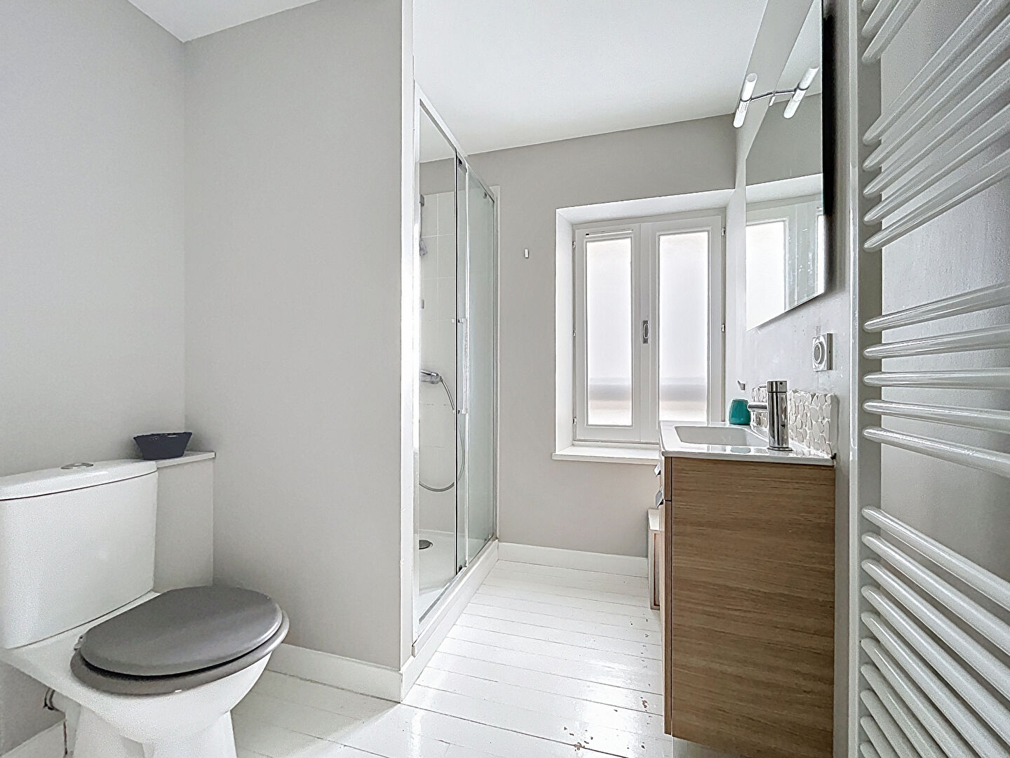 Espace nuit en dernier étage : un palier dessert deux chambres (dont une avec double exposition) et une salle d'eau.