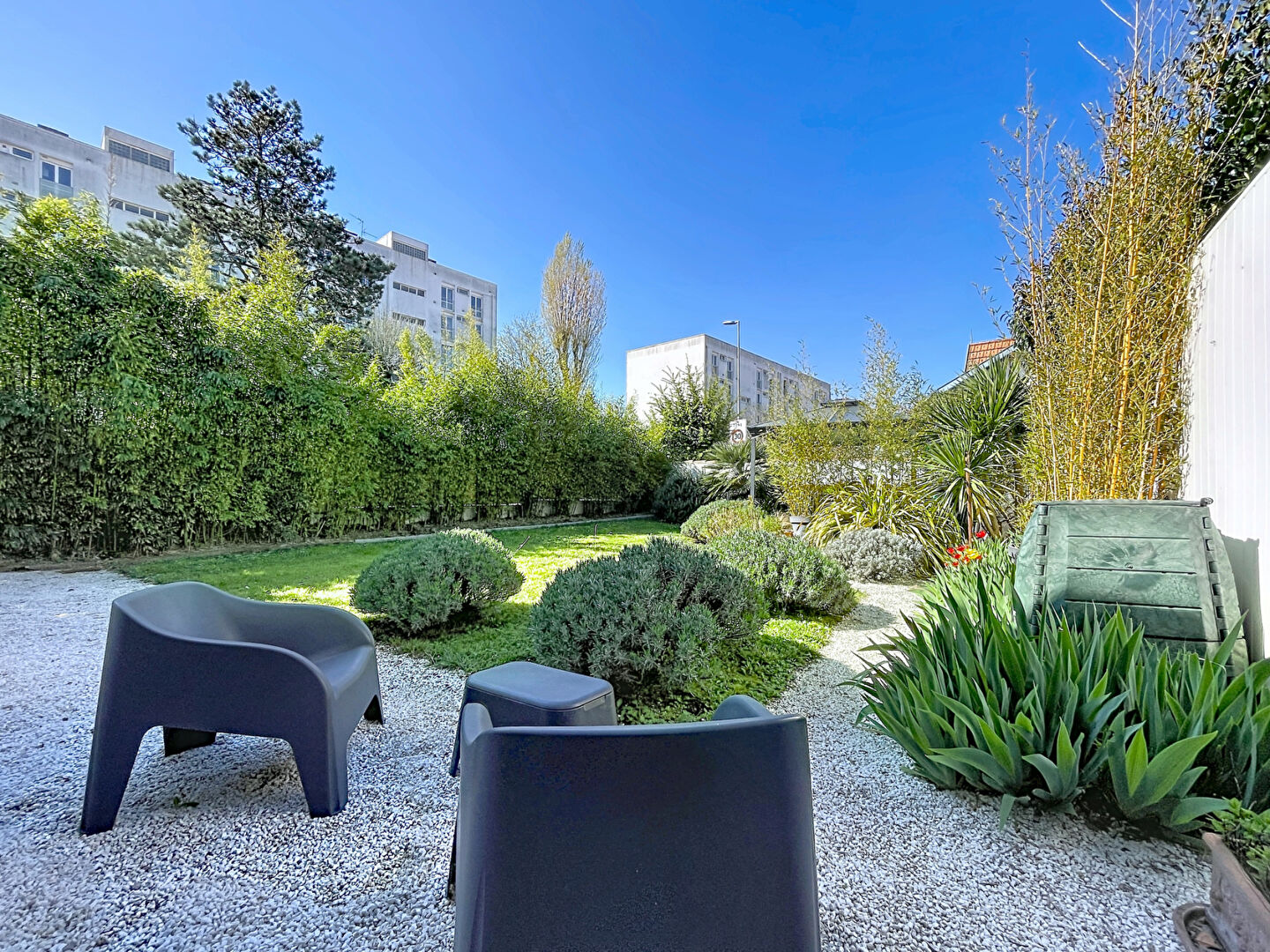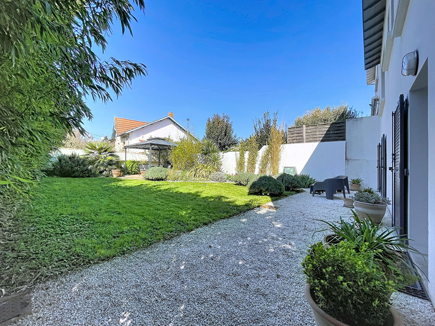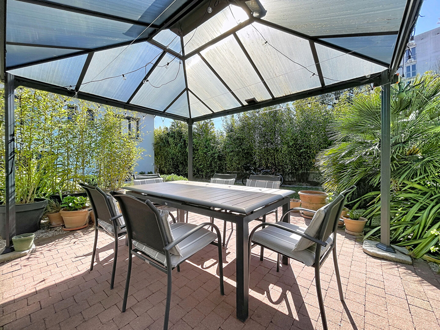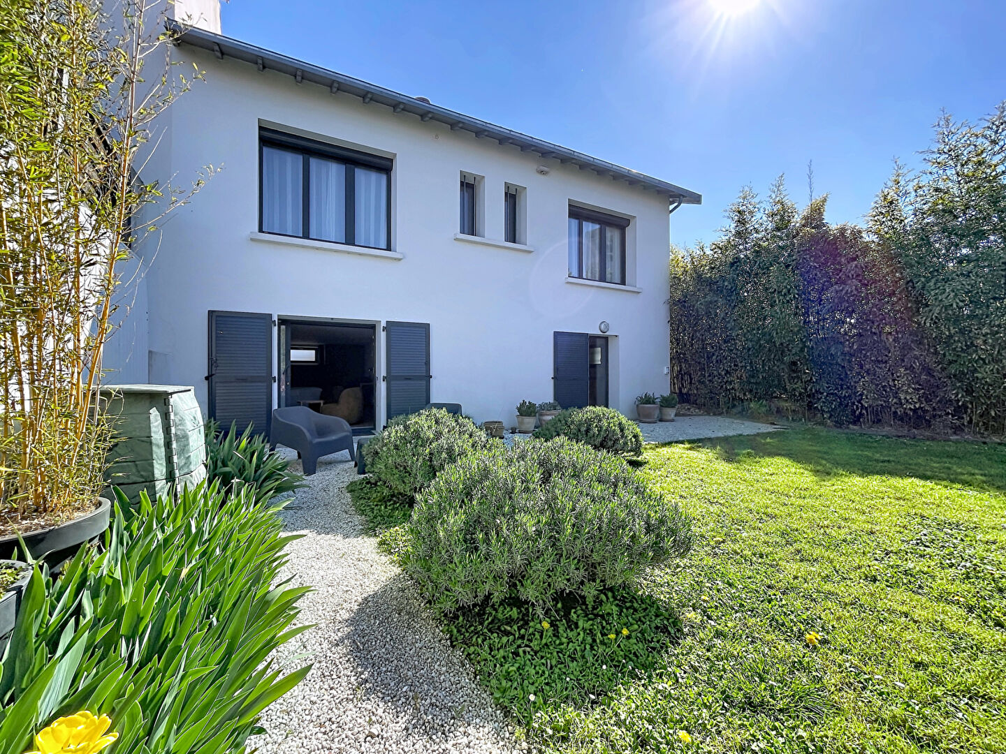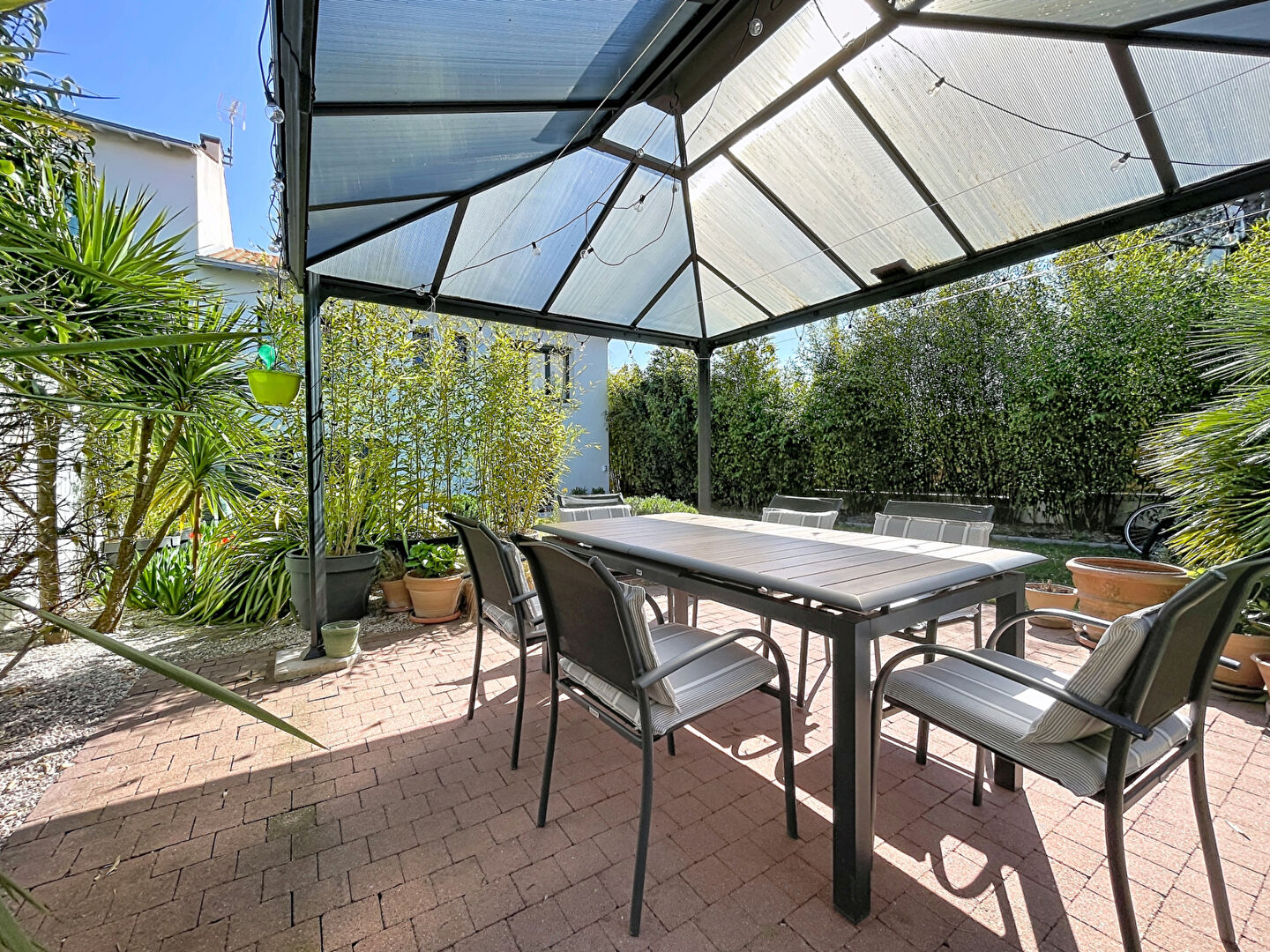 À l'extérieur, vous profiterez d'un jardin intimiste, joliment arboré, idéal pour vos moments de détente.