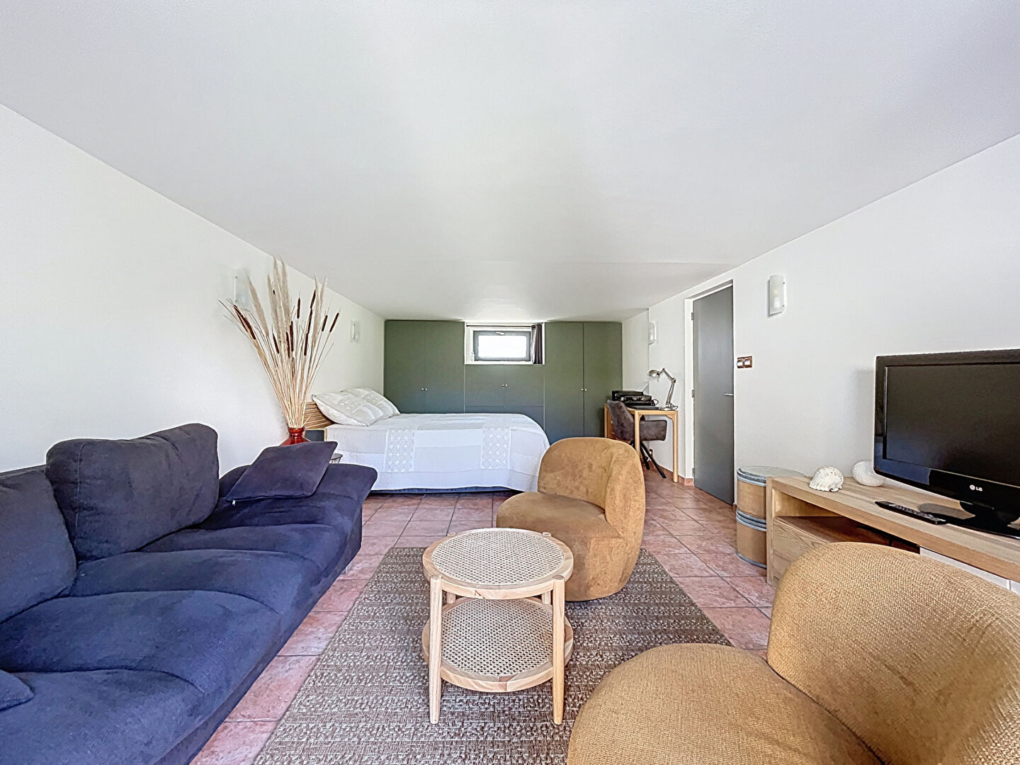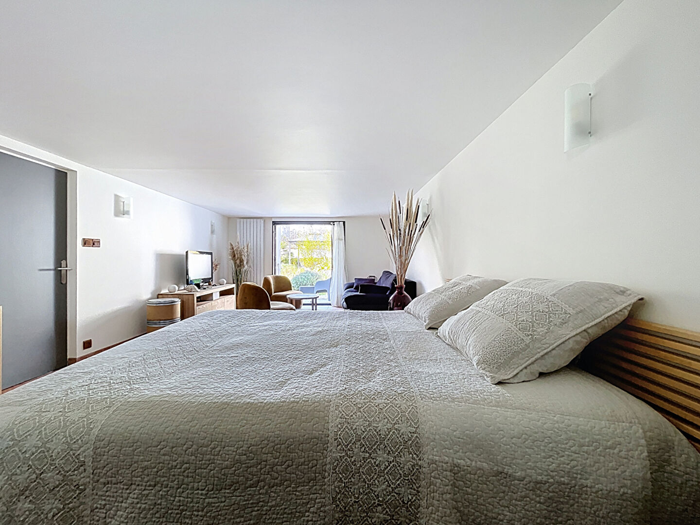 Elle se compose, au rez-de-chaussée, d'une spacieuse chambre de 19 m² avec accès direct au jardin, d'un WC, d'un cellier ainsi que d'une cuisine aménagée. Cette dernière peut facilement être transformée en salle d'eau afin de créer une grande suite parentale de plain-pied selon vos besoins.