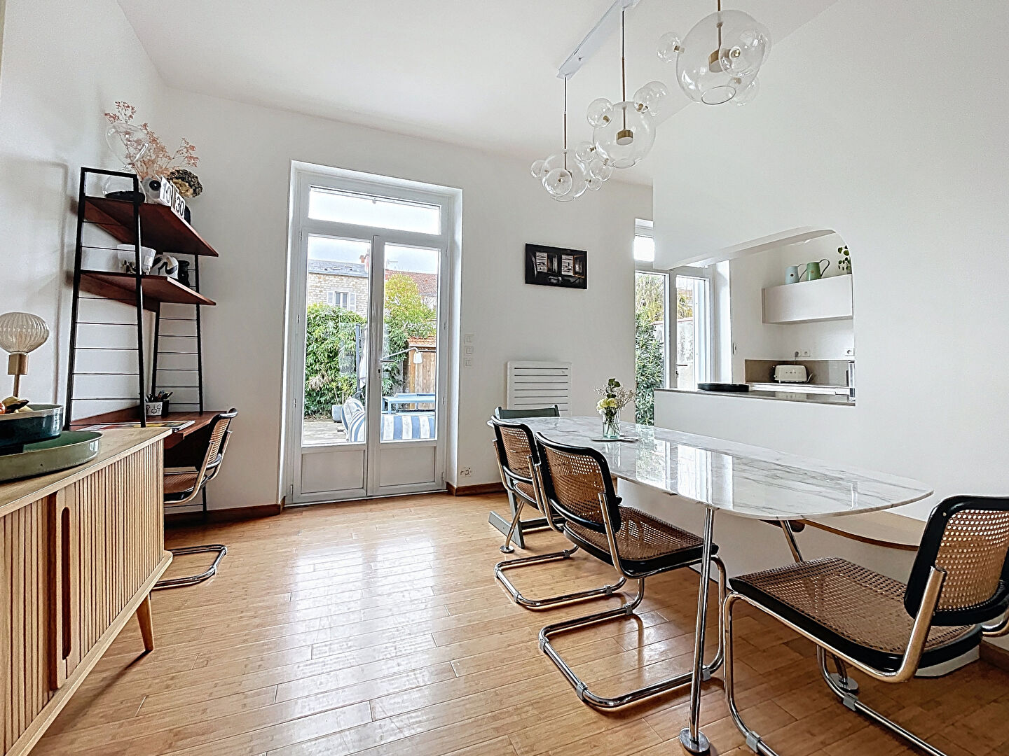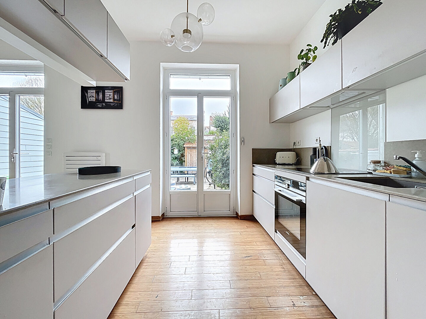 La Rochelle, proche du mail et au coeur de La Genette, belle maison de caractère des années 1900 avec une belle façade et en excellent état. Elle se compose au RDC d'une agréable pièce à vivre traversante, une cuisine ouverte aménagée et équipée et un WC, au 1er, un palier avec deux chambres dont une avec dressing et salle de bains, un WC, au 2ème une grande chambre avec salle d'eau privative. Terrasse d'environ 55 m², jardin exposé sud sur une parcelle de 121m².
