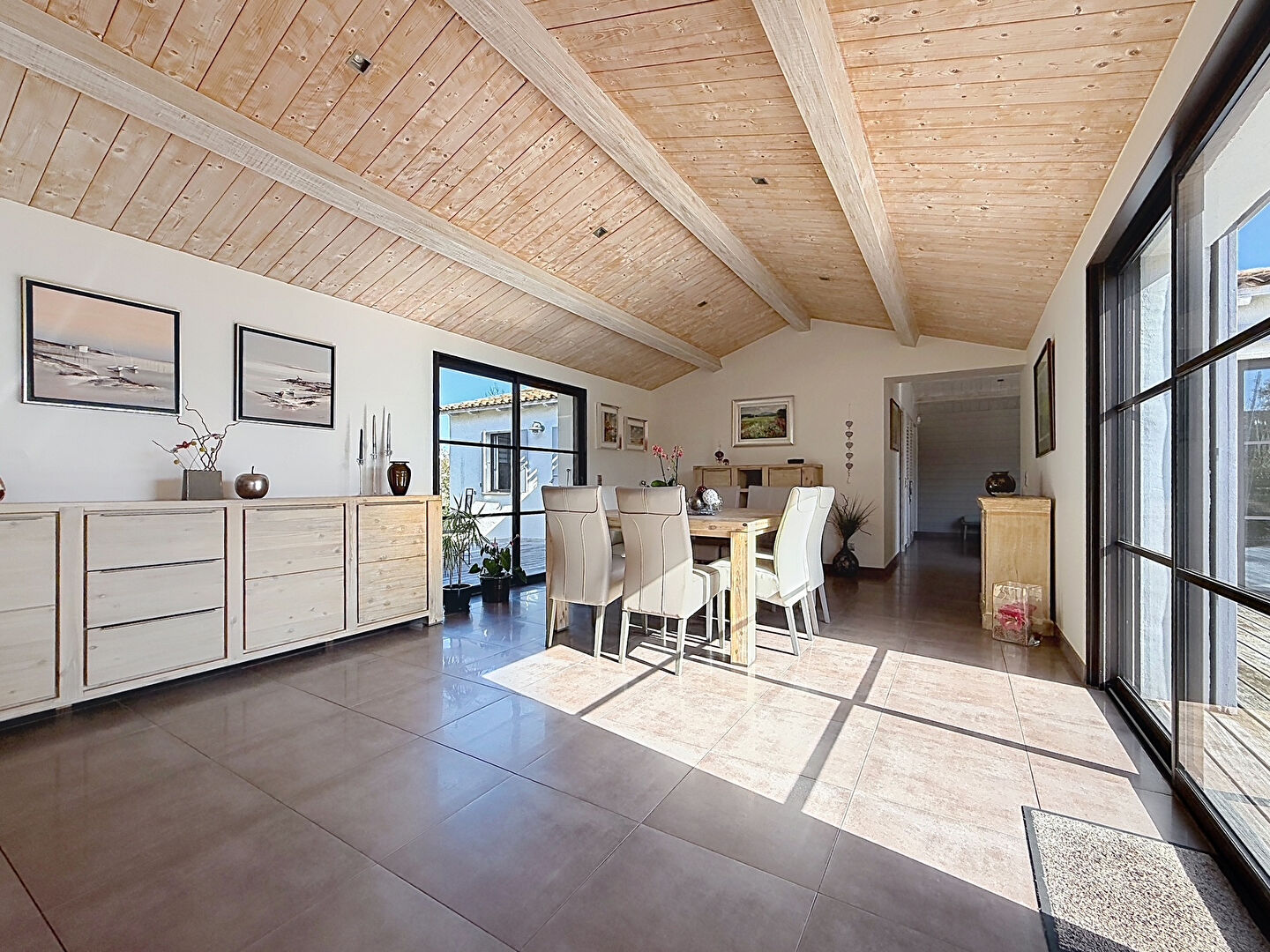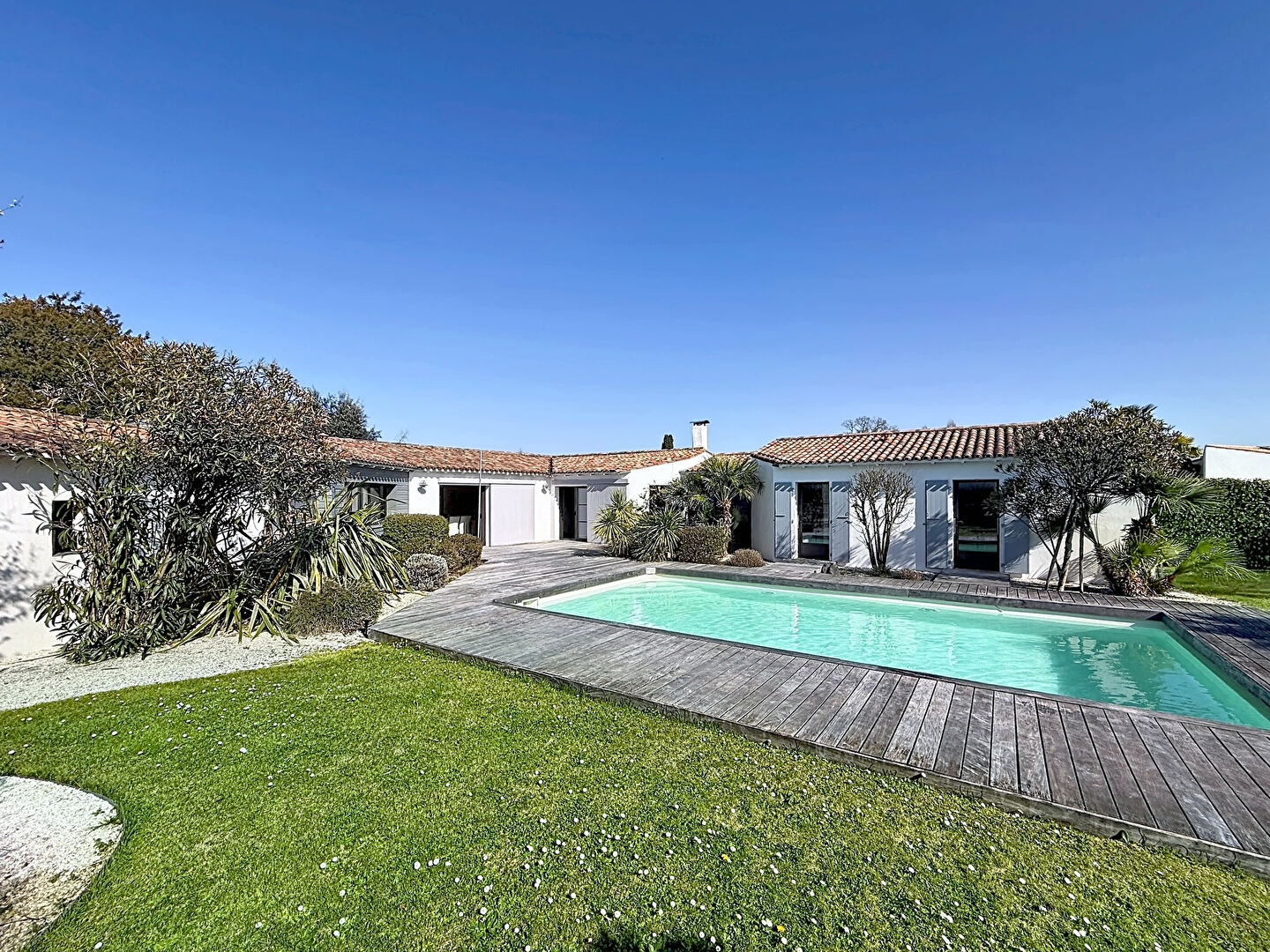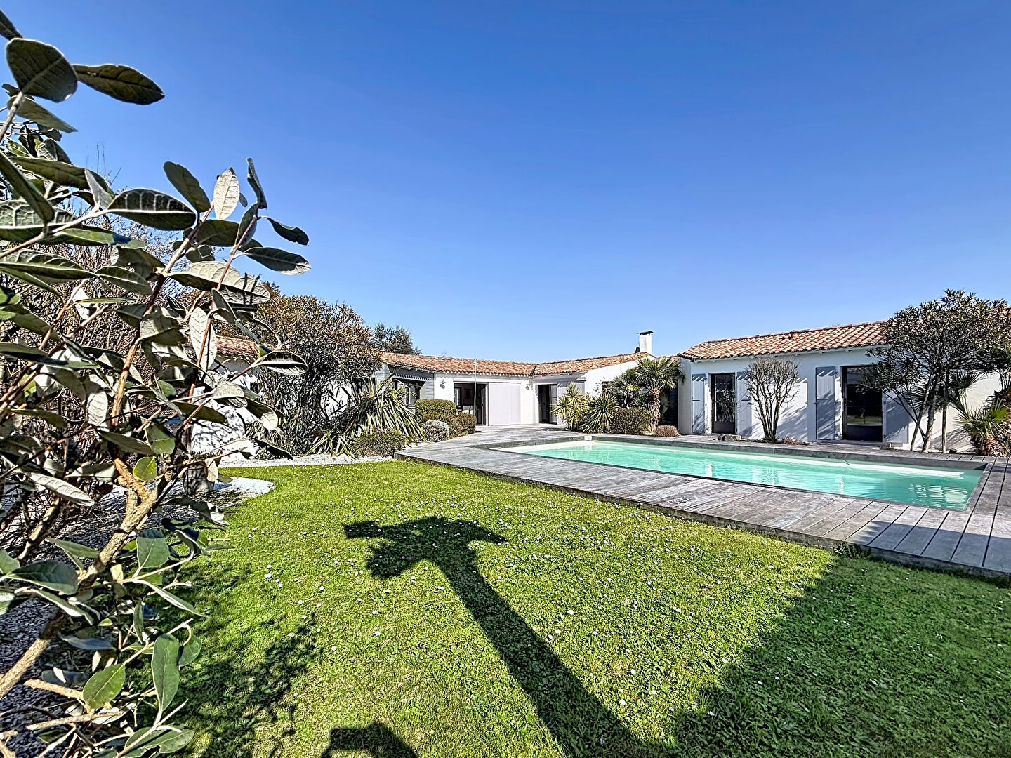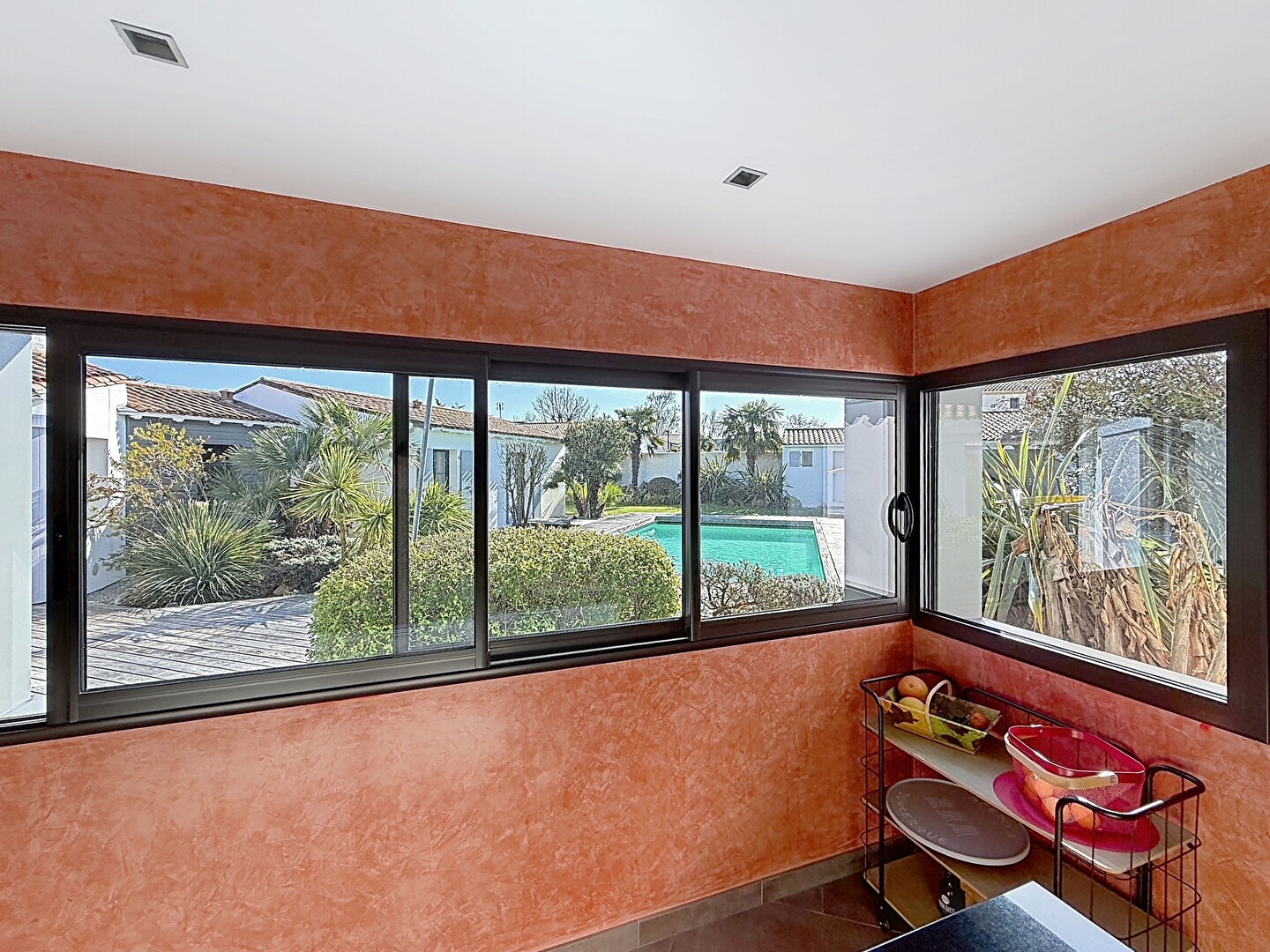PERIGNY-ROMPSAY PROCHE CANAL / VIEUX PORT - Superbe maison de plain pied de style rétaise haut de gamme avec de beaux espaces de vie, 5 chambres dont une suite parentale et 3 pièces d'eau. Un terrain de 1100m² avec jardin paysagé, double terrasse exposée Nord et Sud, une piscine chauffée avec un pool house, un préau pour garer deux voitures et un local vélo/moto.
