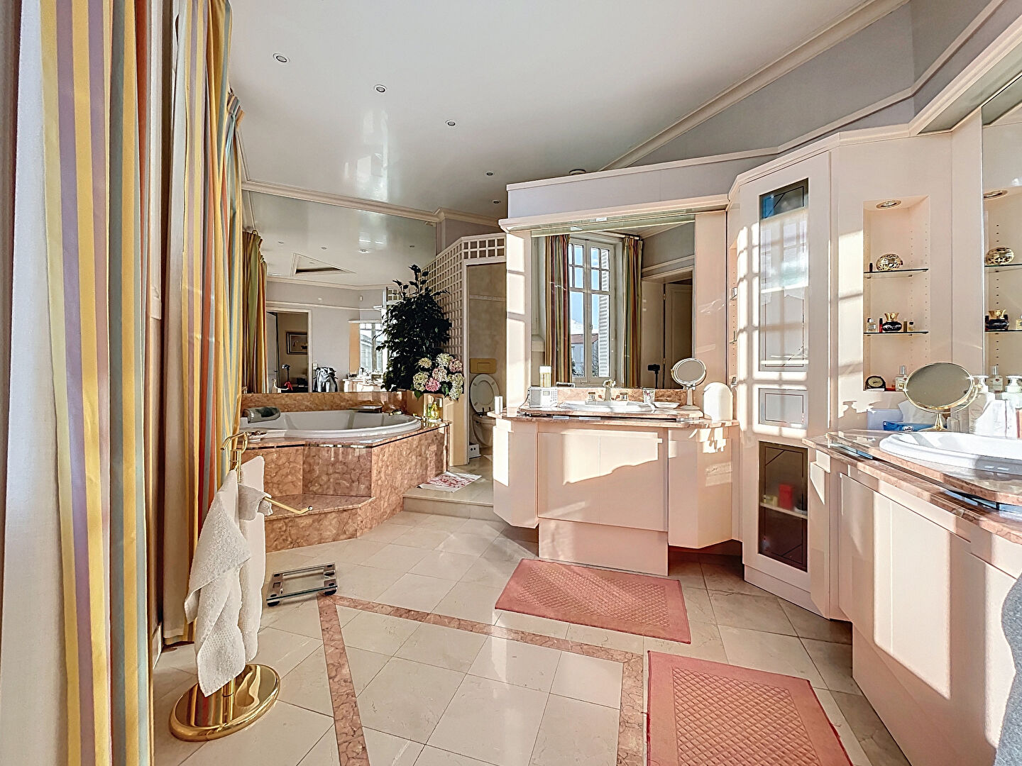 Elle se compose d'un élégant salon avec cheminée, d'une vaste cuisine, de quatre chambres, chacune disposant de sa salle d'eau privative, d'un bureau, d'une buanderie, ainsi que de plusieurs espaces offrant un fort potentiel d'aménagement.