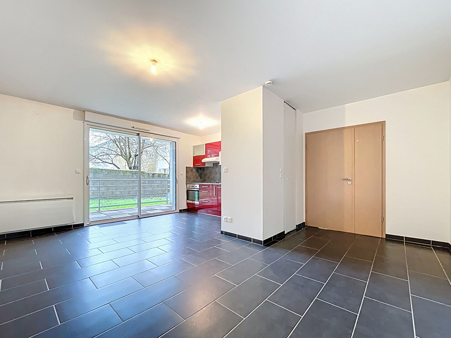 Un séjour lumineux avec cuisine aménagée et équipée