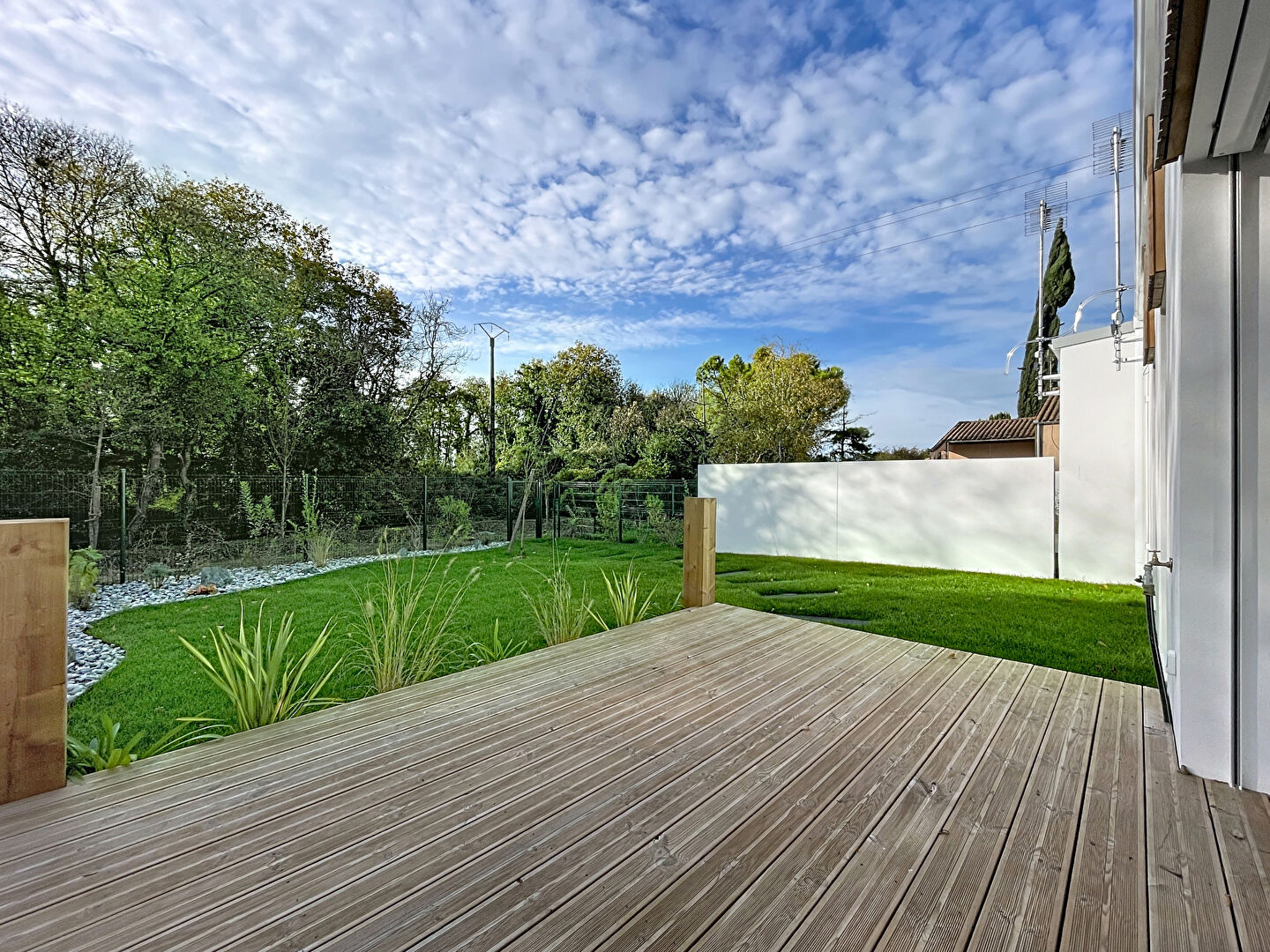 Terrasse en bois de 11 m² donnant sur un jardin privatif de 112 m²