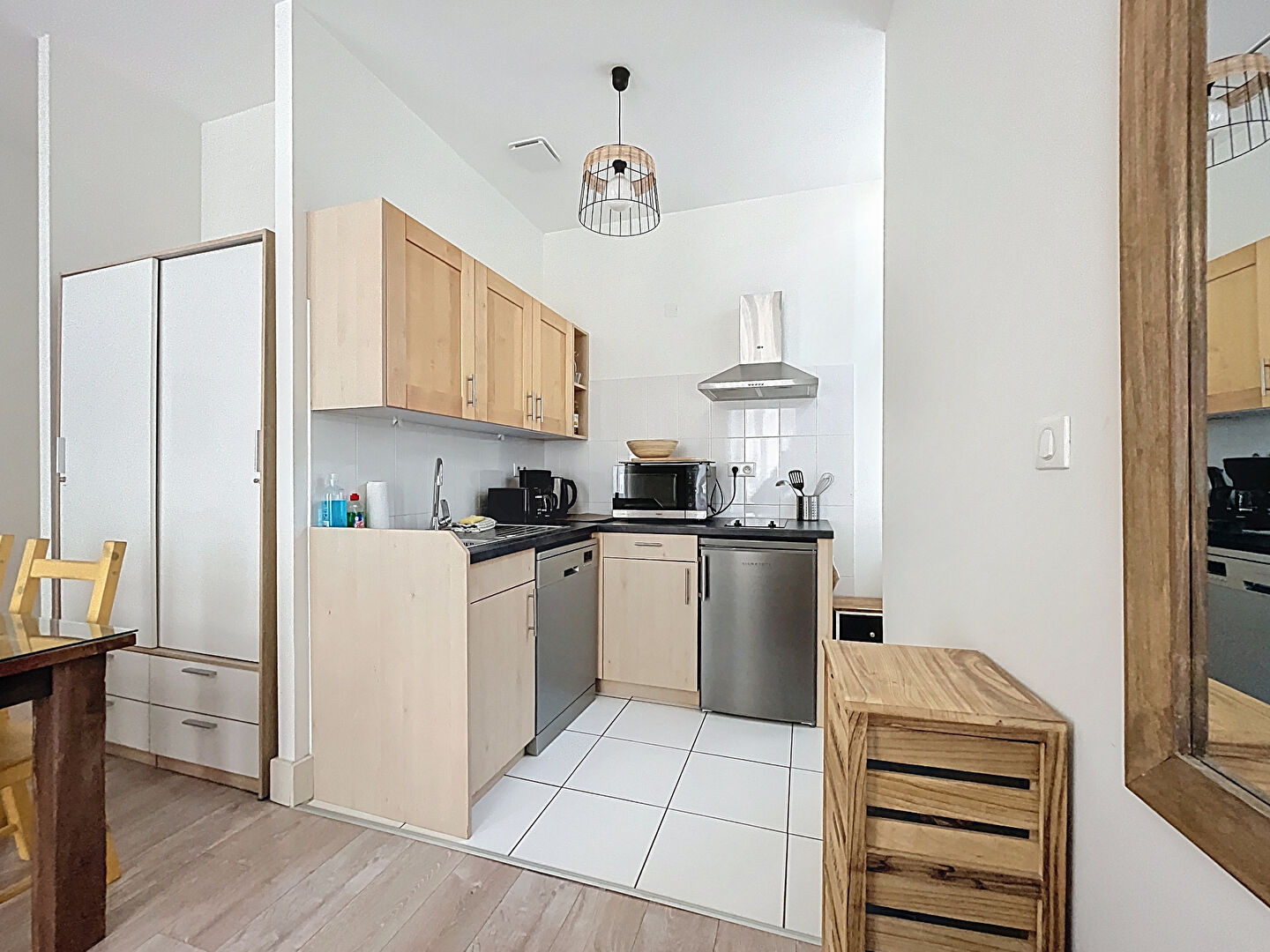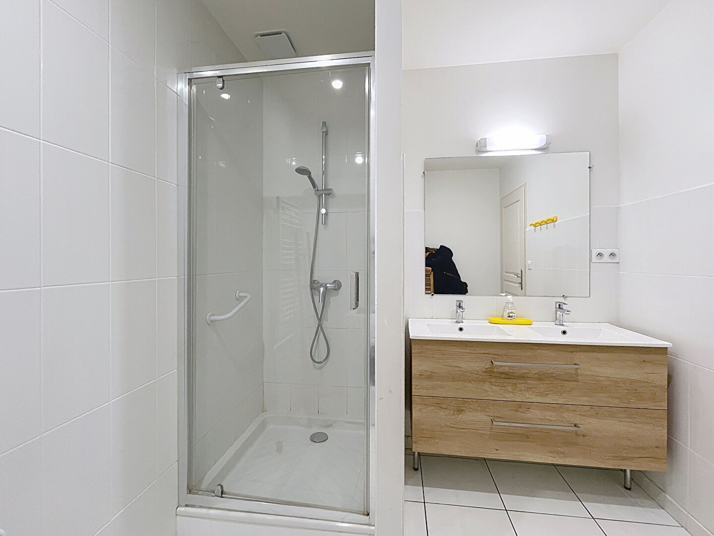 Il comprend un salon lumineux avec placard de rangement, une cuisine entièrement aménagée et équipée, une chambre avec placard, un dégagement, un WC séparé, ainsi qu'une salle d'eau moderne équipée d'une machine à laver, d'un sèche serviette et d'un sèche linge.