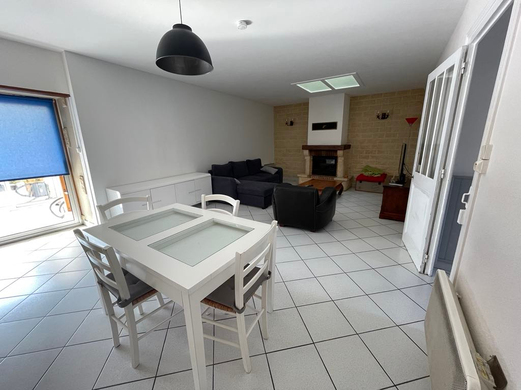 Pièce de vie, cuisine ouverte aménagée équipée, 2 chambres, salle d'eau, WC séparée, petite véranda, terrasse, garage à vélo.