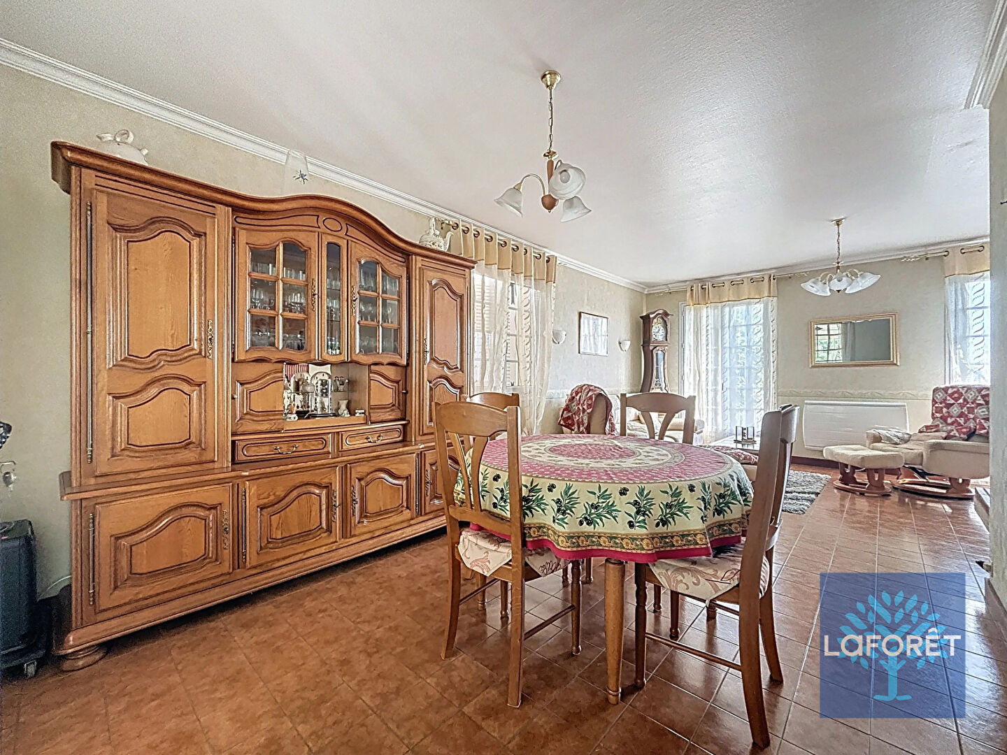 Un vaste salon-séjour baigné de lumière, parfait pour les moments conviviaux,