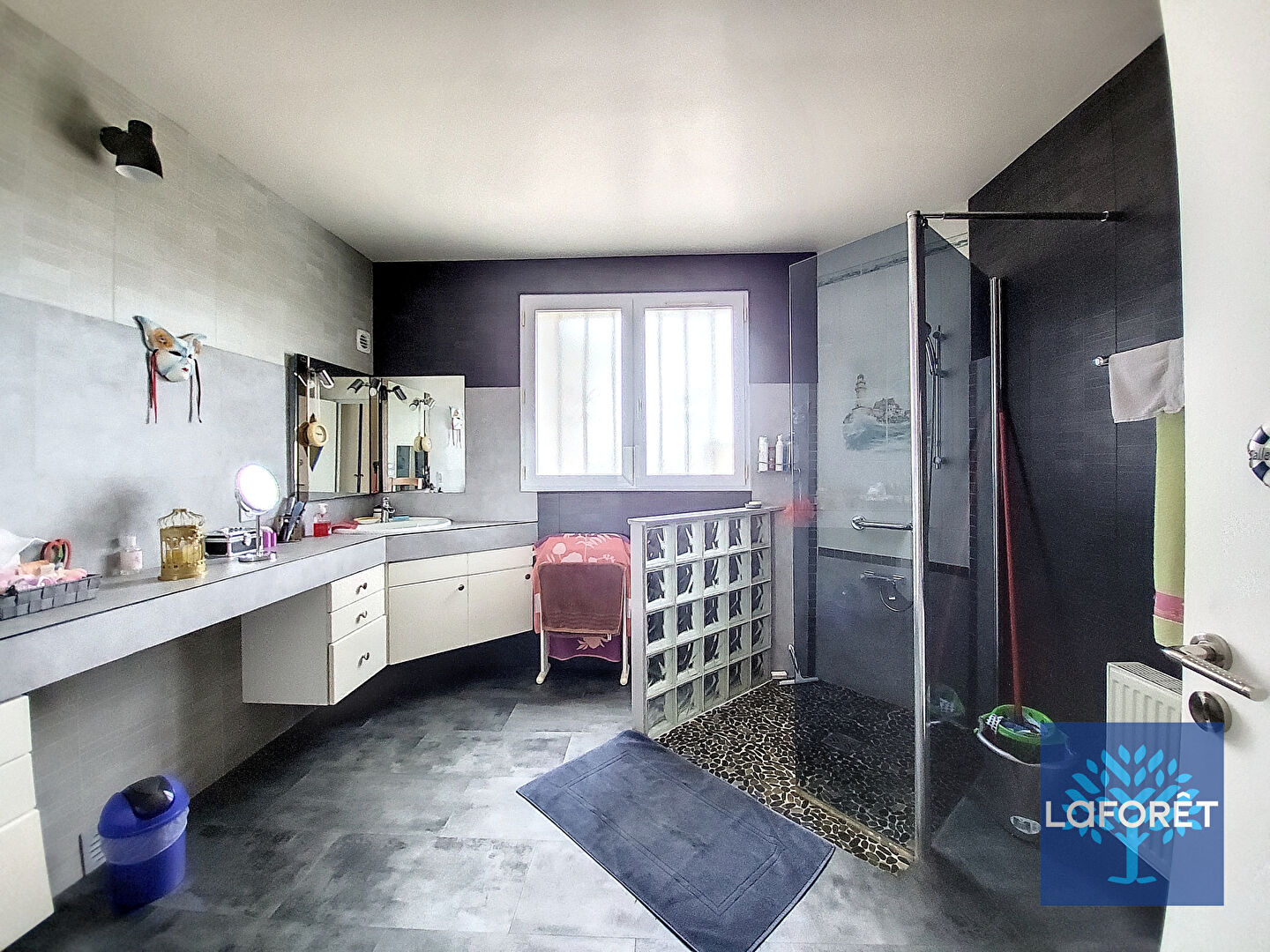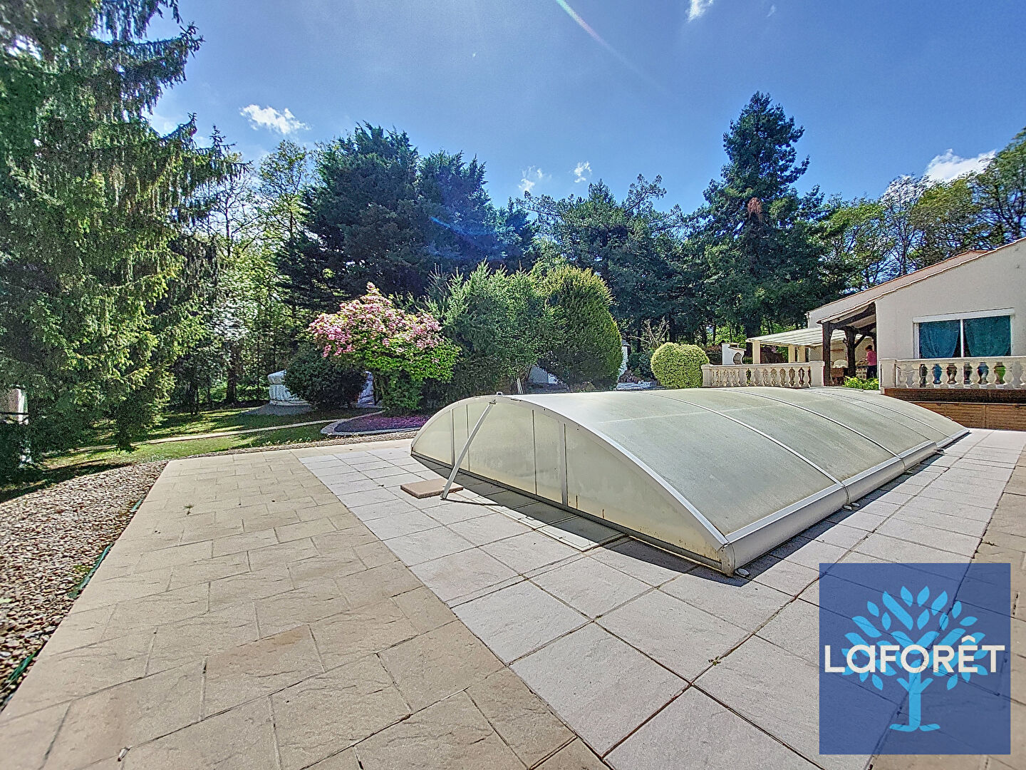Un salon séjour avec poêle à pellets , un sauna , un garage double et une piscine traitée au sel complètent ce bien.