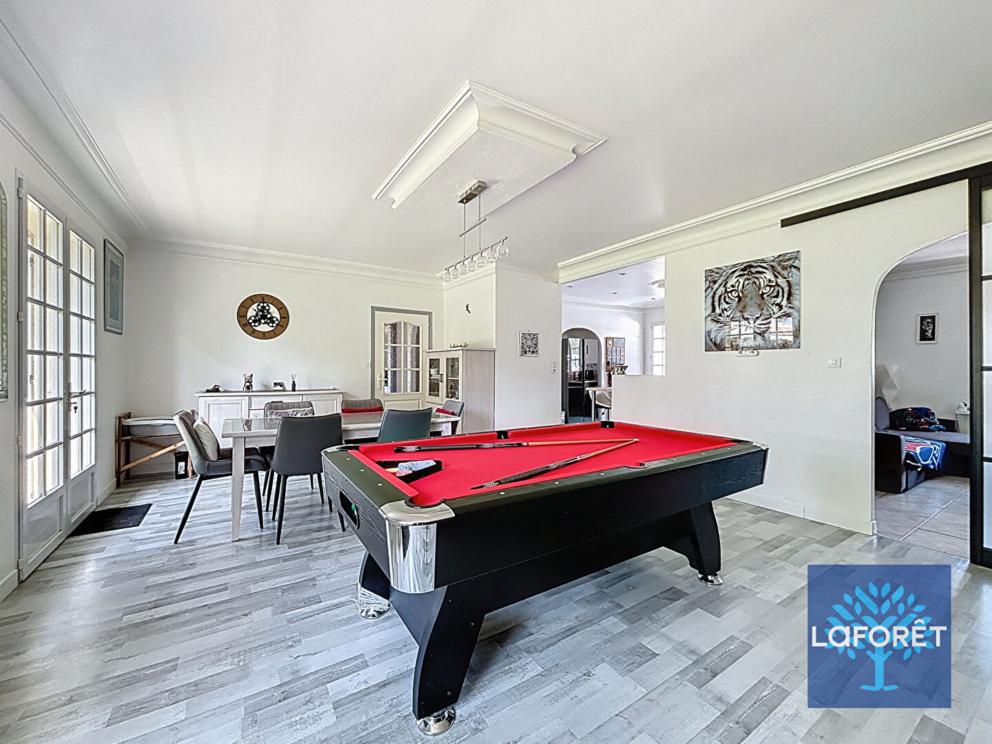 - 1 salon indépendant ouvrant sur la grande salle à manger, pouvant servir pour une quatrième chambre