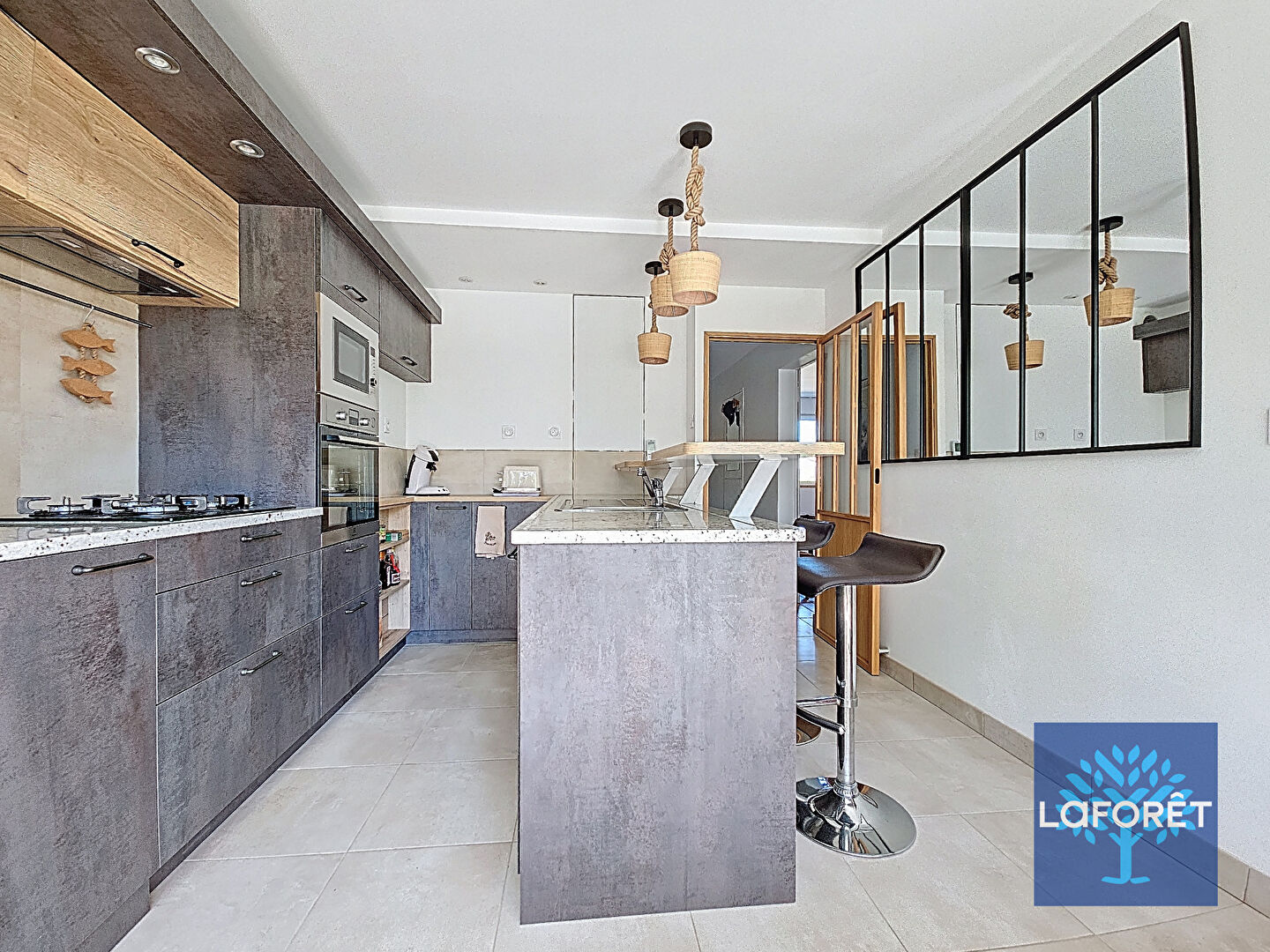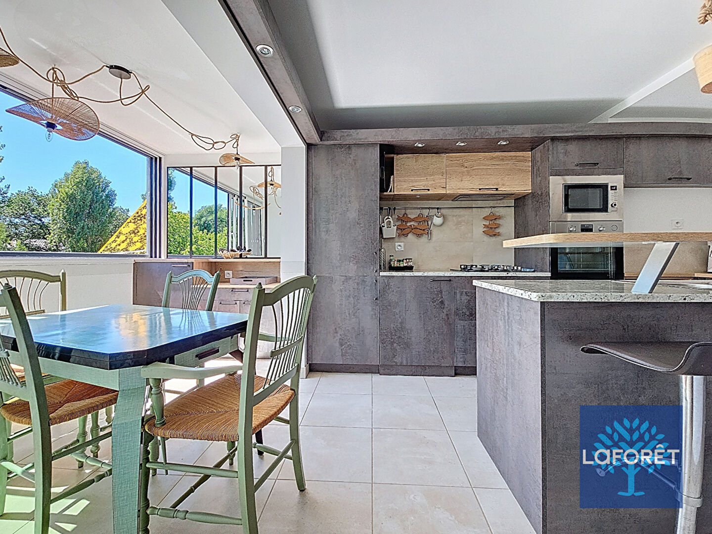 Une cuisine aménagée et équipée ouverte sur un coin repas convivial