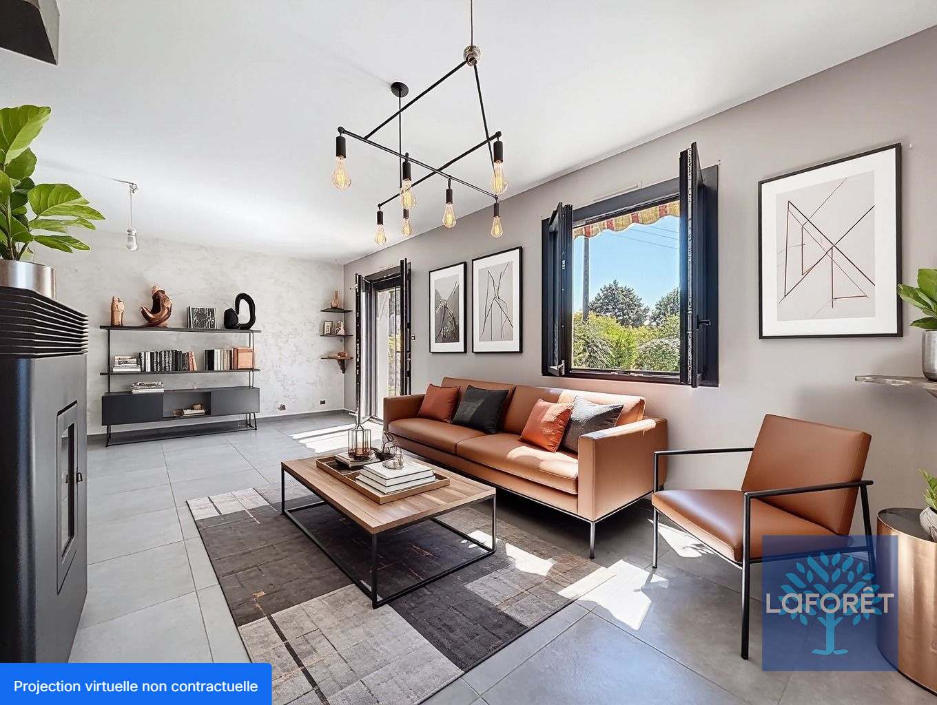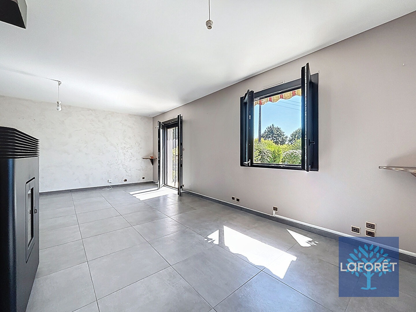 - Une pièce de vie spacieuse et lumineuse avec poêle à granulés, offrant un cadre chaleureux et convivial