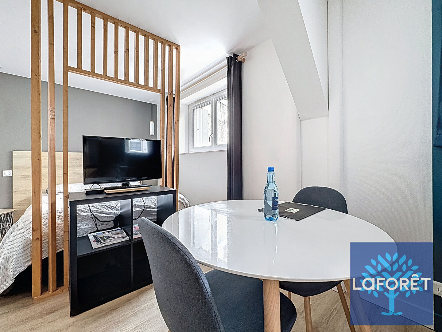 Il se compose d'une pièce de vie avec espace salon-séjour, d'une cuisine aménagée et équipée, ainsi que d'une salle d'eau avec WC.