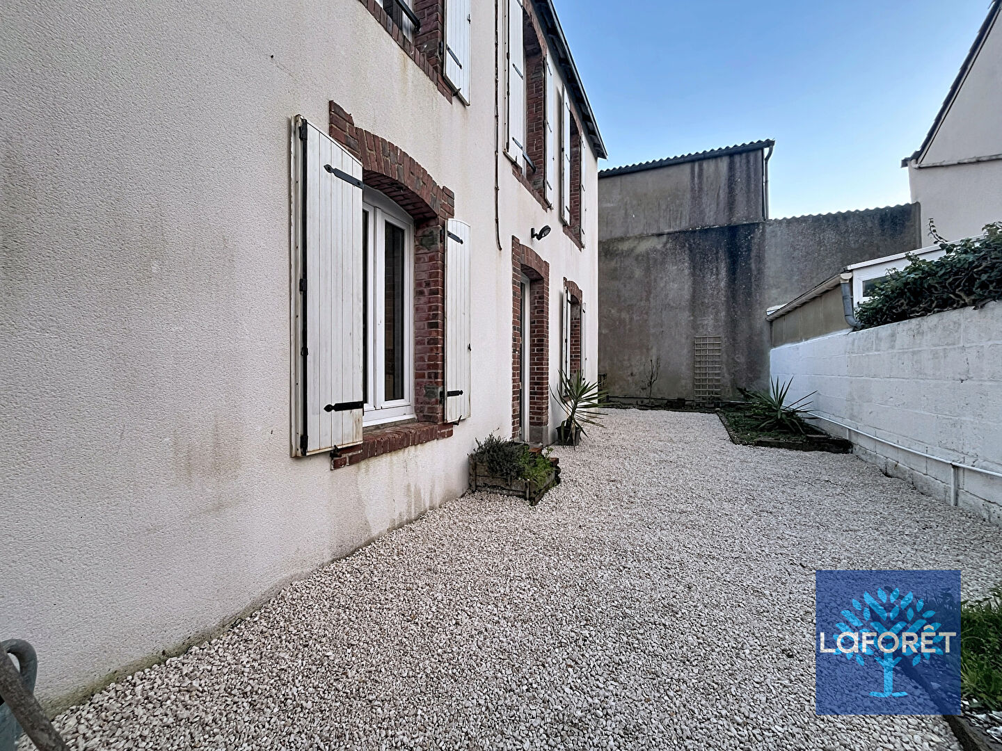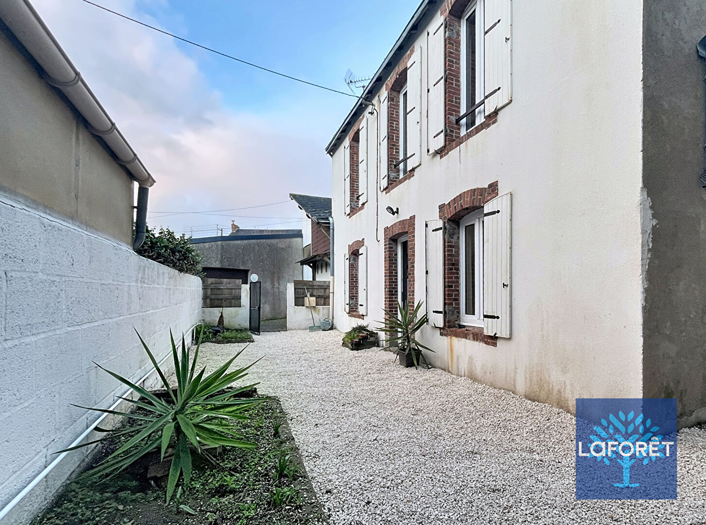 Un cour clôturée et un garage pour stationner une voiture citadine.
