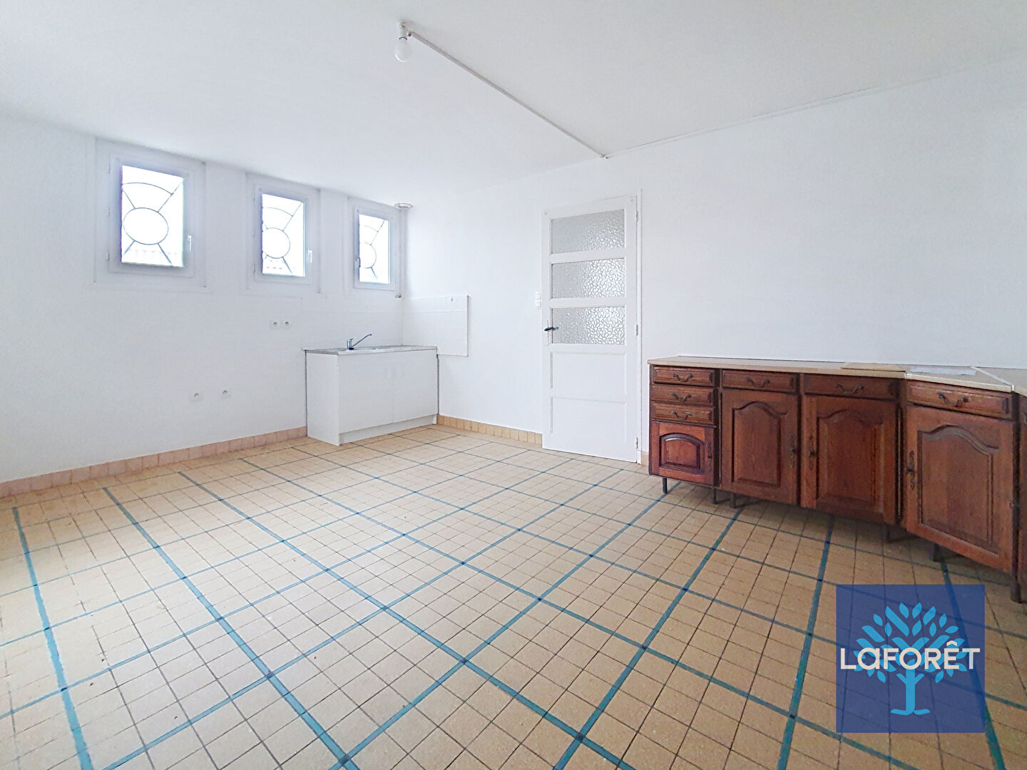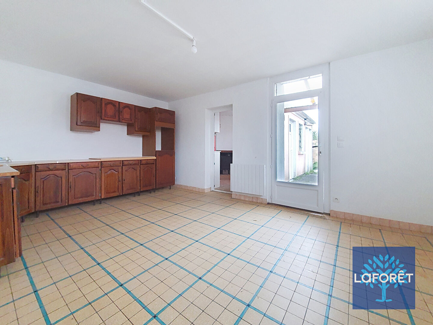 Maison à louer de 112 m² comprenant au rez-de-chaussée une pièce de vie une cuisine aménagée, arrière-cuisine, cellier, buanderie et WC.