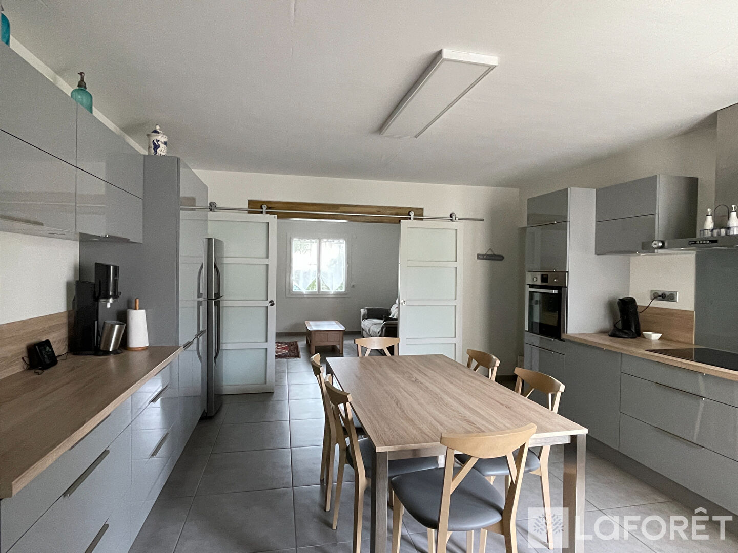Elle comprend une entrée avec placards, un salon avec poêle à bois et clim, une grande cuisine conviviale entièrement aménagée et équipée, trois chambres, deux salles d'eau, deux WC indépendants.