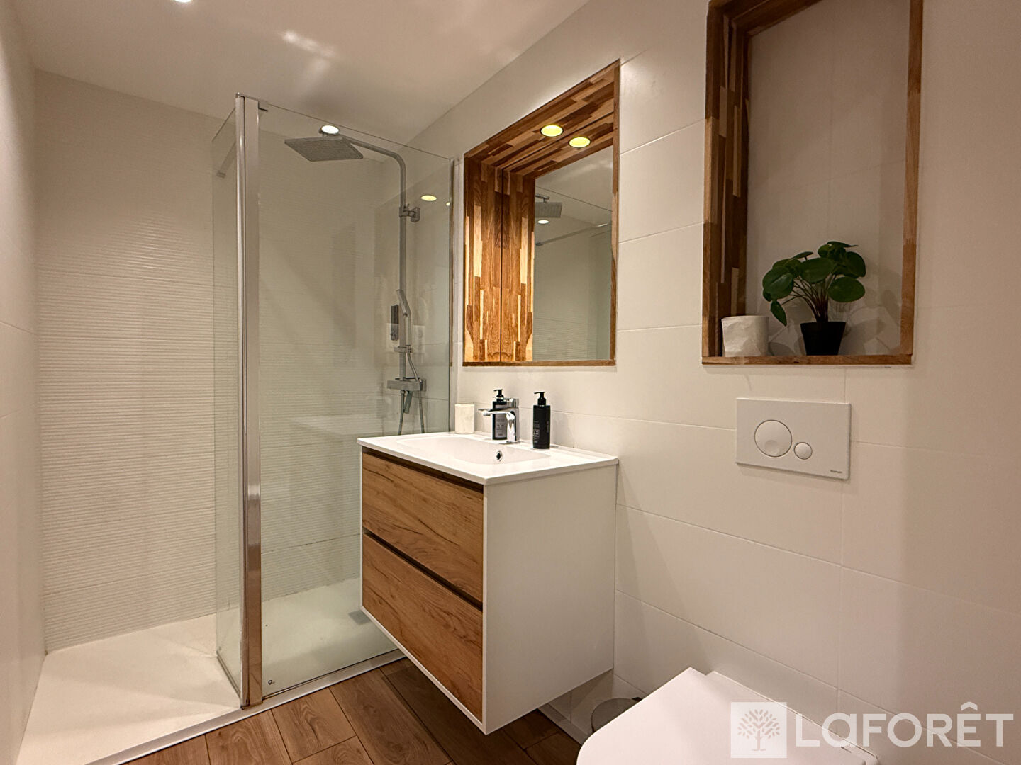 Elle propose une surface d'environ 62 m² et se compose, au rez-de-chaussée, d'une pièce de vie lumineuse avec cuisine ouverte, aménagée et équipée, donnant accès à une terrasse privative.