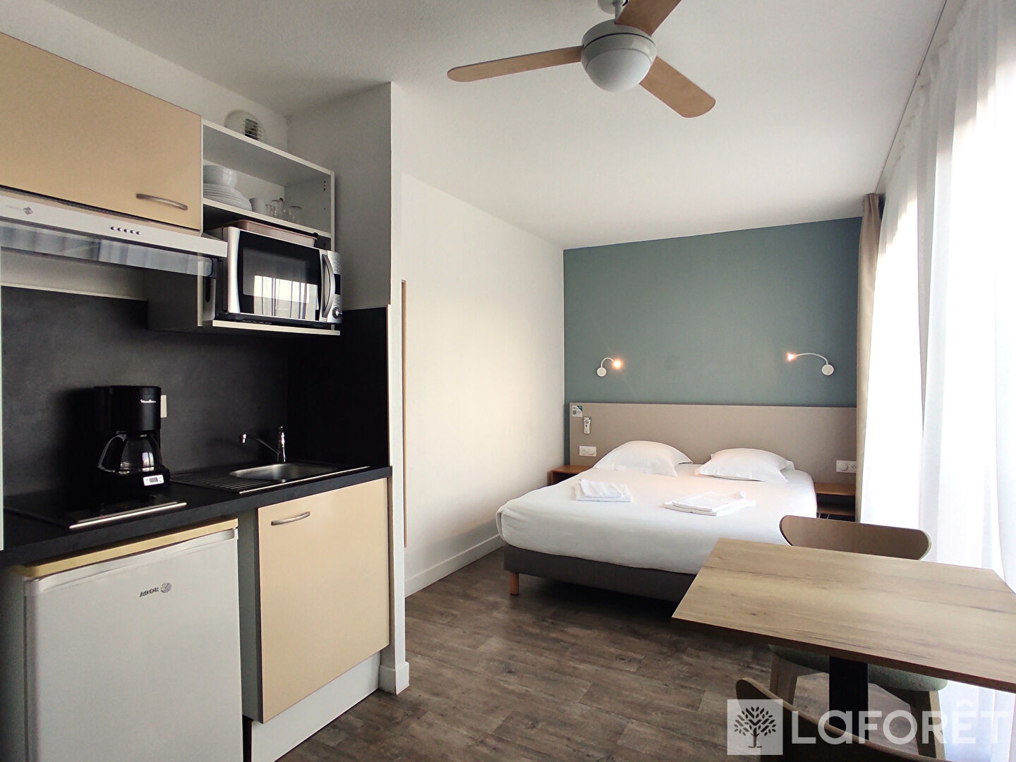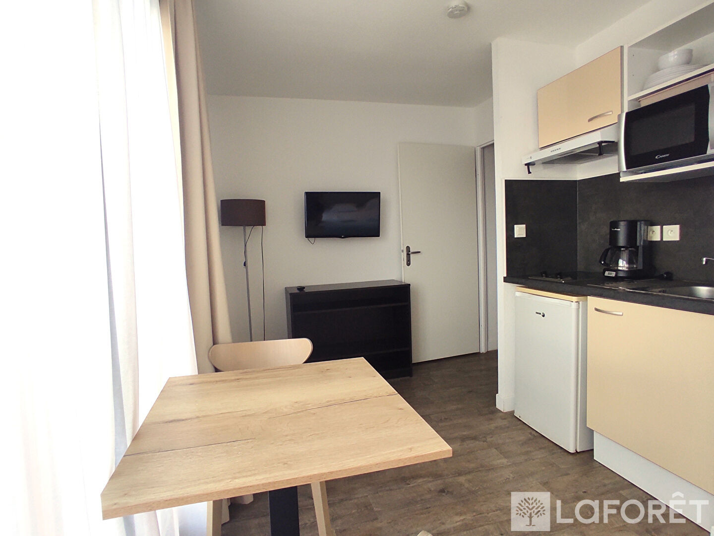 Studio meublé de 22 m² avec parking, situé dans une résidence de tourisme de qualité avec piscine et salle de sports. Implantée dans un environnement boisé et calme, au bord d'un étang, à 500 m des commerces, cette résidence est très recherchée par une clientèle touristique et d'affaires.