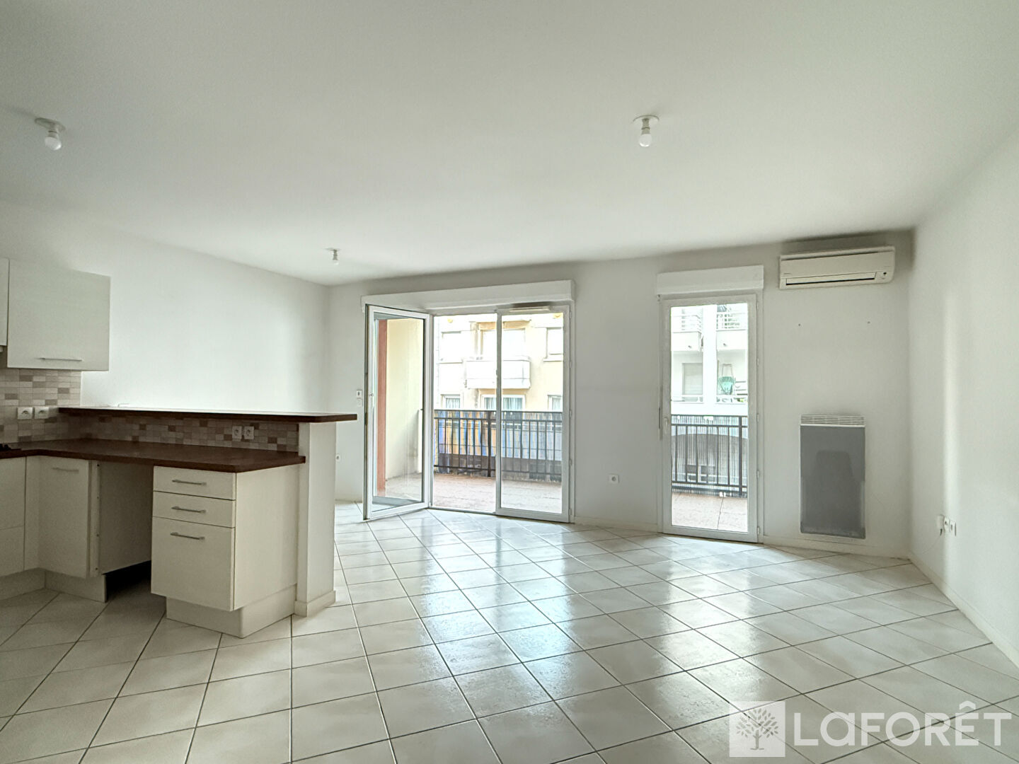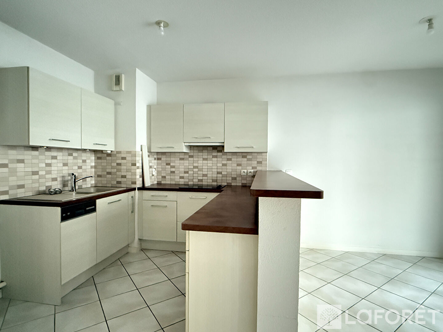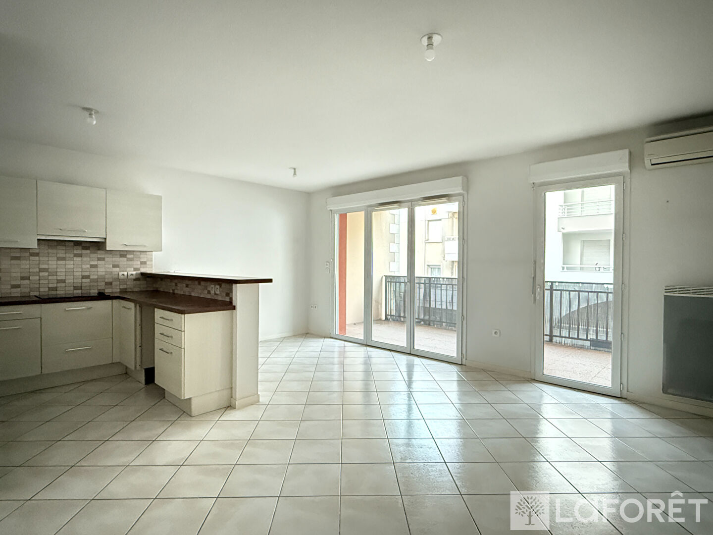 Appartement T3 comprenant une entrée avec placard, un salon avec cuisine ouverte aménagée et équipée donnant sur une terrasse de 11m² exposée est.