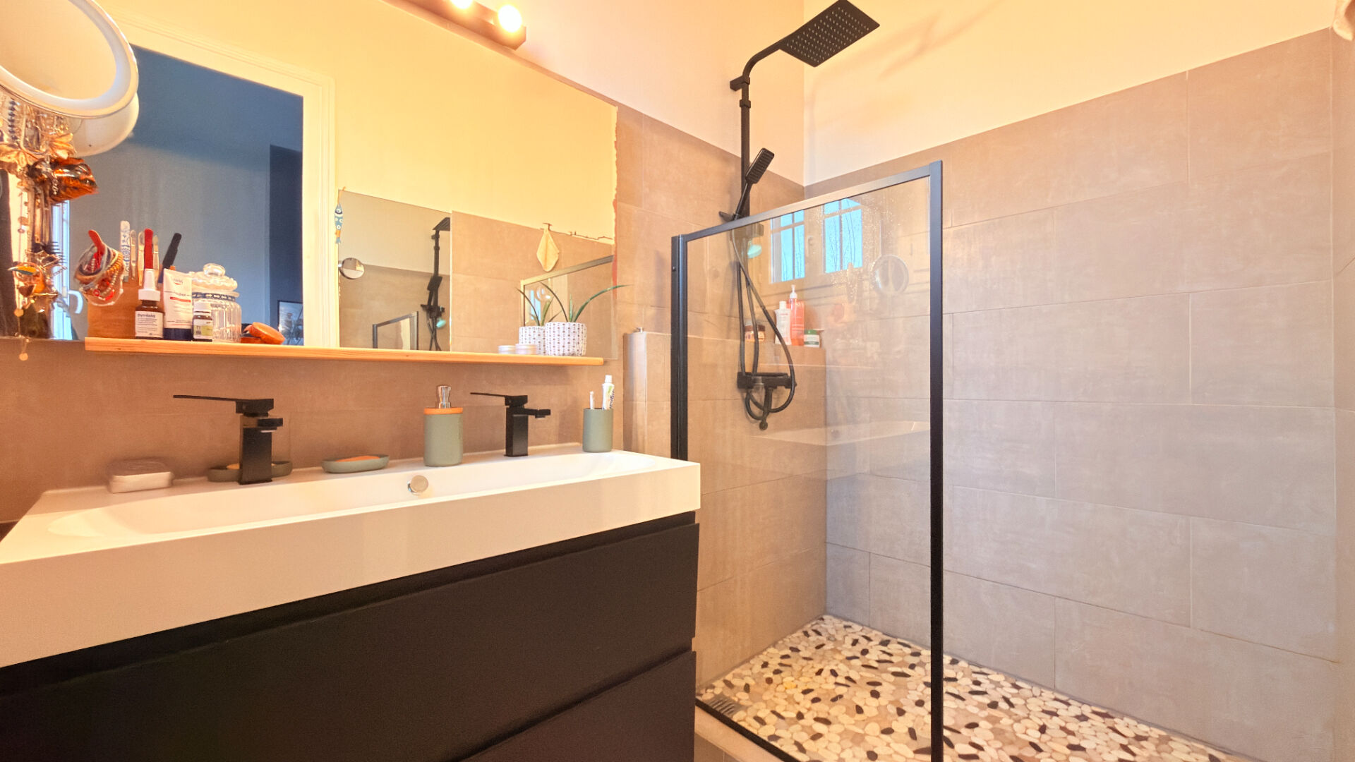 L'espace nuit se compose de deux chambres confortables, chacune disposant de sa propre salle d'eau ou salle de bain, offrant intimité et praticité au quotidien. Un WC indépendant complète l'agencement.