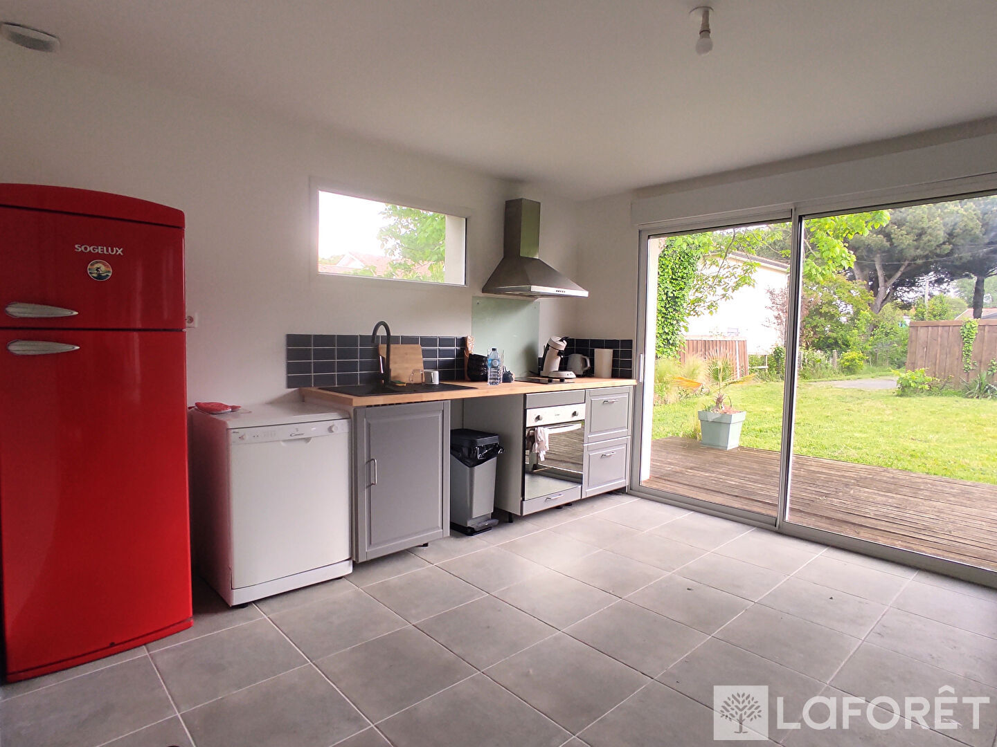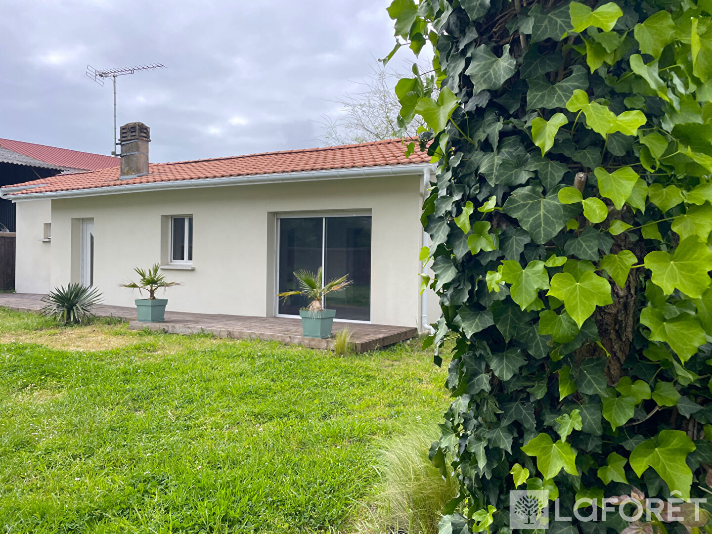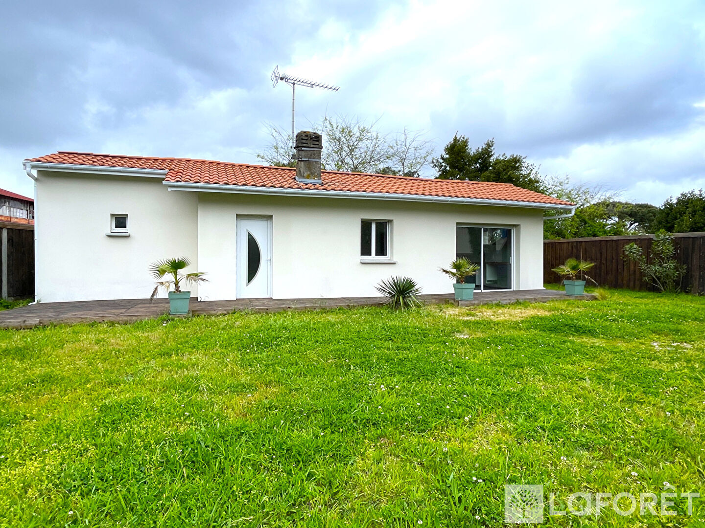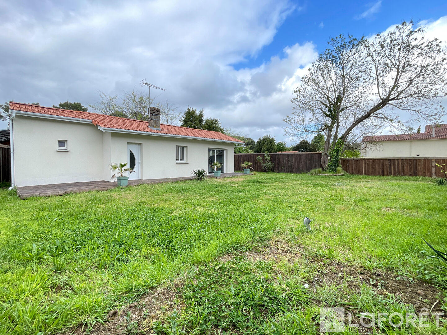 Sa terrasse bois exposée Sud vous accueillera pour profiter d'un jardin prêt à aménager sur une parcelle d'environ 394m².