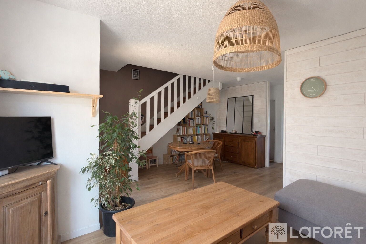 À l'étage, deux chambres disposant de placards offrent de nombreux rangements. Une salle de bain vient s'ajouter à cet agencement fonctionnel.