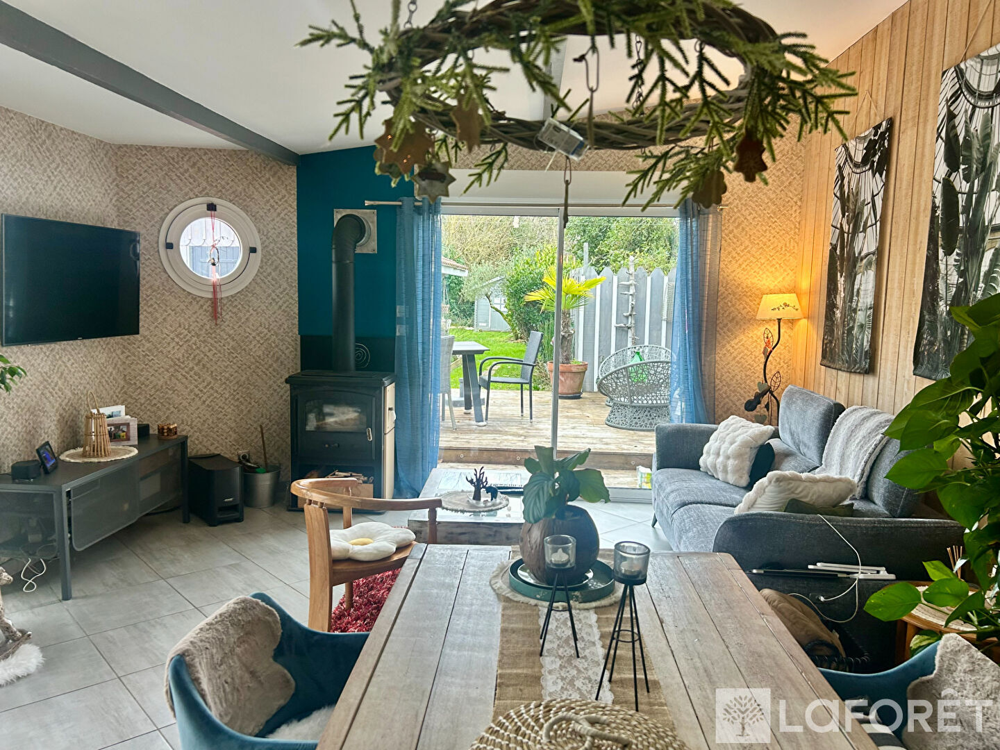 Édifiée sur un terrain arboré et paysagé d'environ 400 m², la maison se compose d'une belle pièce de vie lumineuse, de deux chambres dont une avec une salle d'eau, ainsi que d'une mezzanine pouvant faire office de bureau, espace détente ou chambre d'appoint.