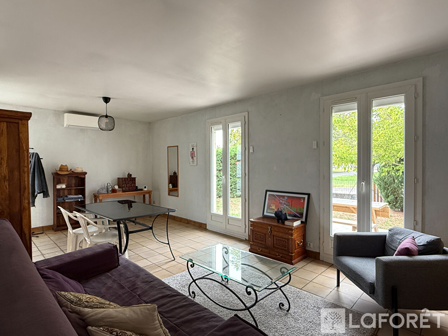 Coté équipement, la maison dispose d'une climatisation réversible dans le salon et de menuiseries neuves dans toute la maison.