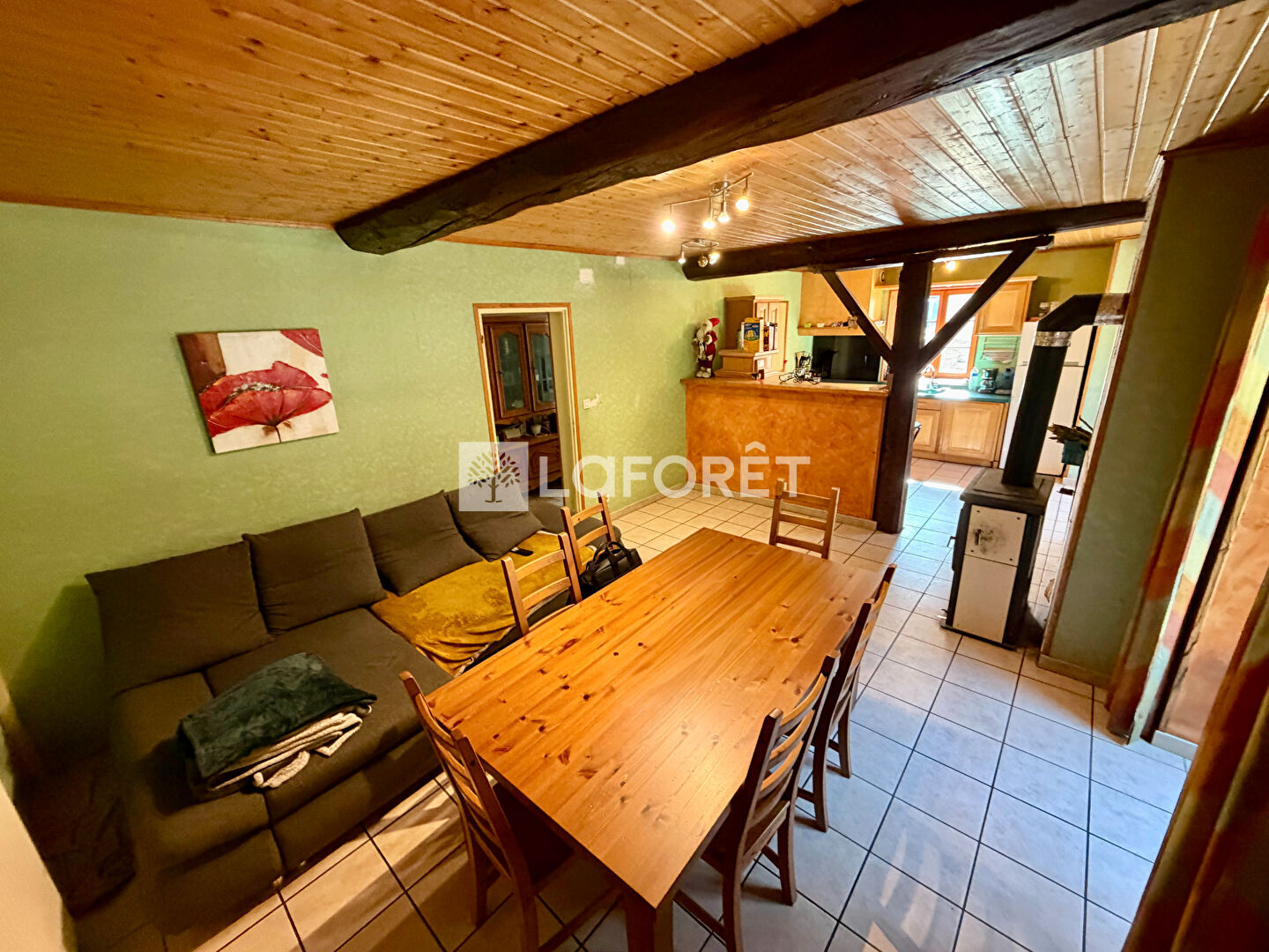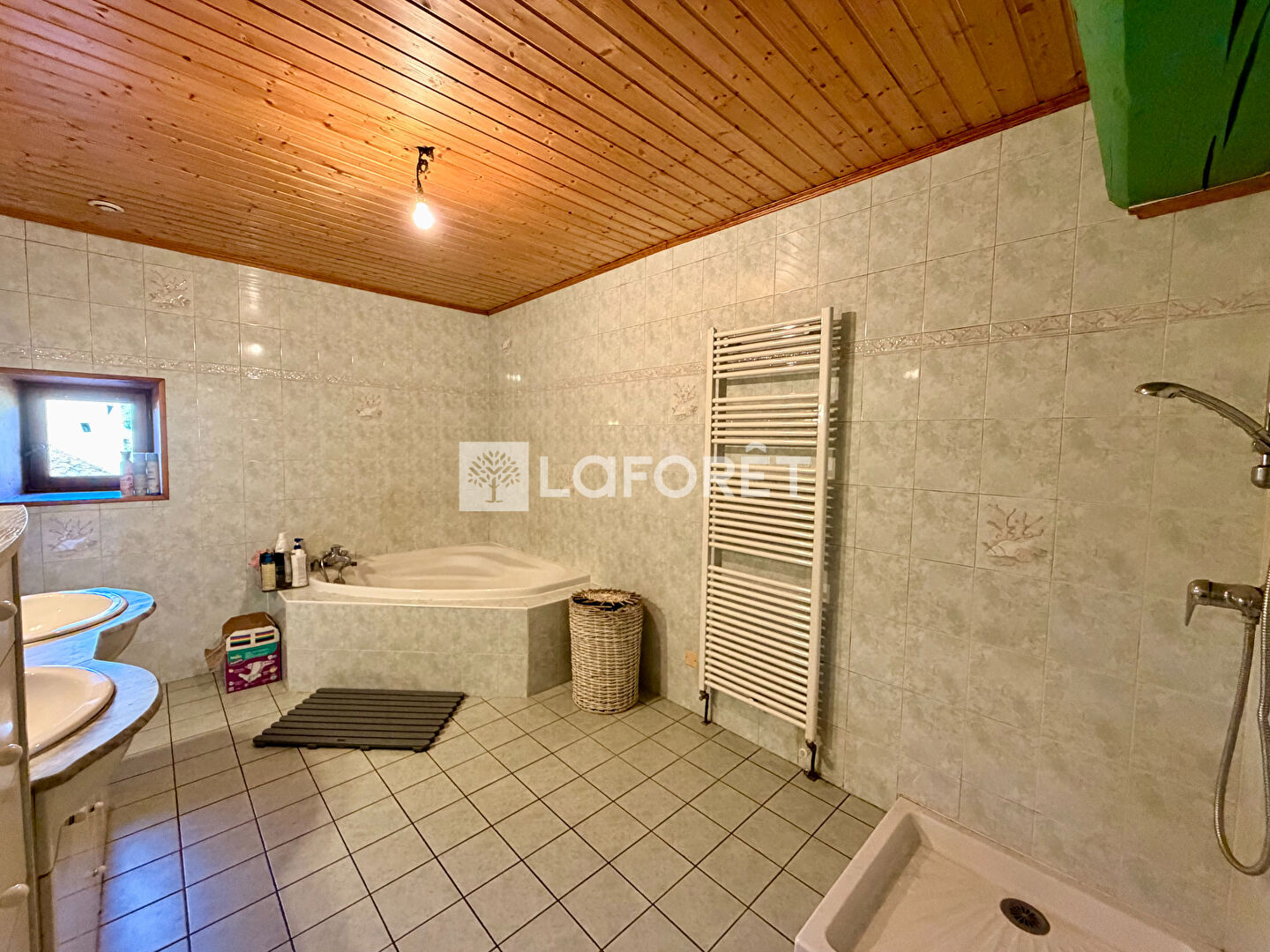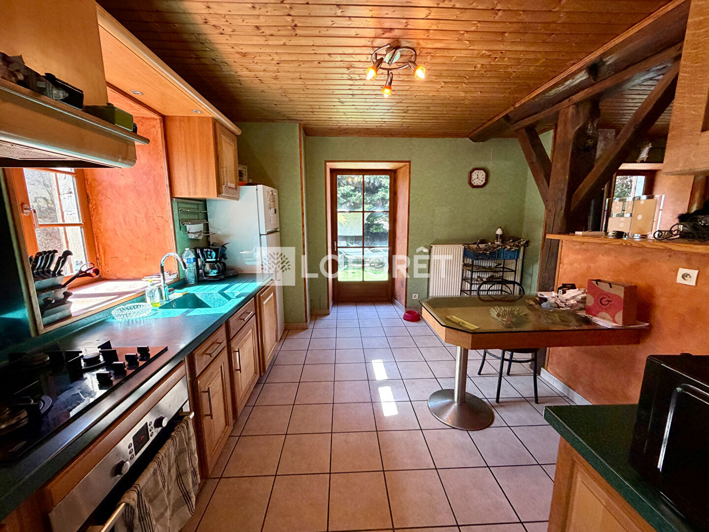 D'une surface habitable d'environ 142 m², elle se compose au rez-de-chaussée d'une chambre, d'un salon, d'une salle à manger et d'une cuisine. À l'étage, vous trouverez trois chambres ainsi qu'une salle de bain.