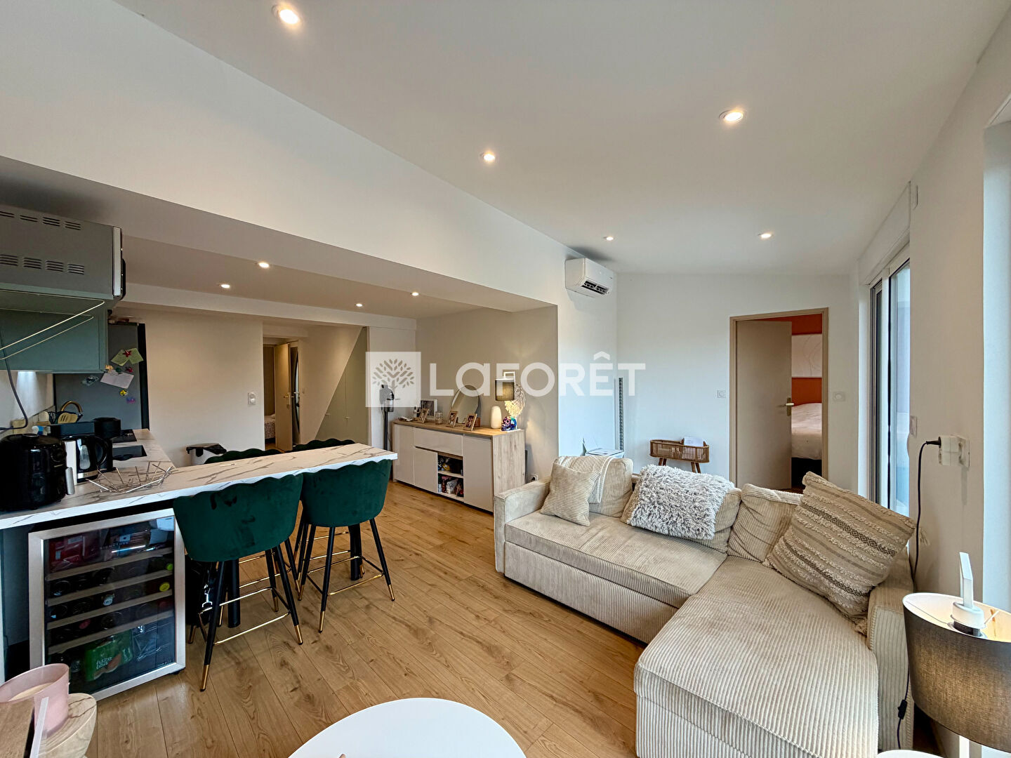 Dès l'entrée, la luminosité naturelle met en valeur un séjour agréable et chaleureux, ouvert sur une cuisine rénovée et fonctionnelle. L'appartement dispose également de deux chambres confortables, toutes deux bien agencées et pensées pour offrir un véritable espace de repos. La salle d'eau rénovée complète l'ensemble avec une touche contemporaine.