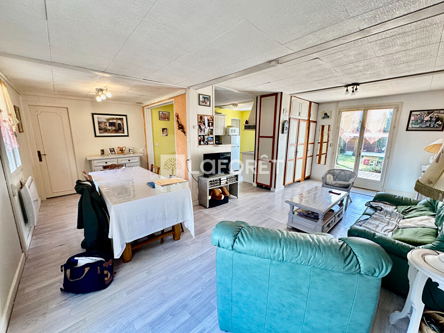 Maison de plain pied sur vide sanitaire. 79 m2 habitable, une grande piece de vie lumineuse donnant sur cuisine équipée ouverte, salle de bains, 2 chambres avec rangements. Garage non attenant sur parcelle de terrain de 680 m2. A venir découvrir sans tarder.