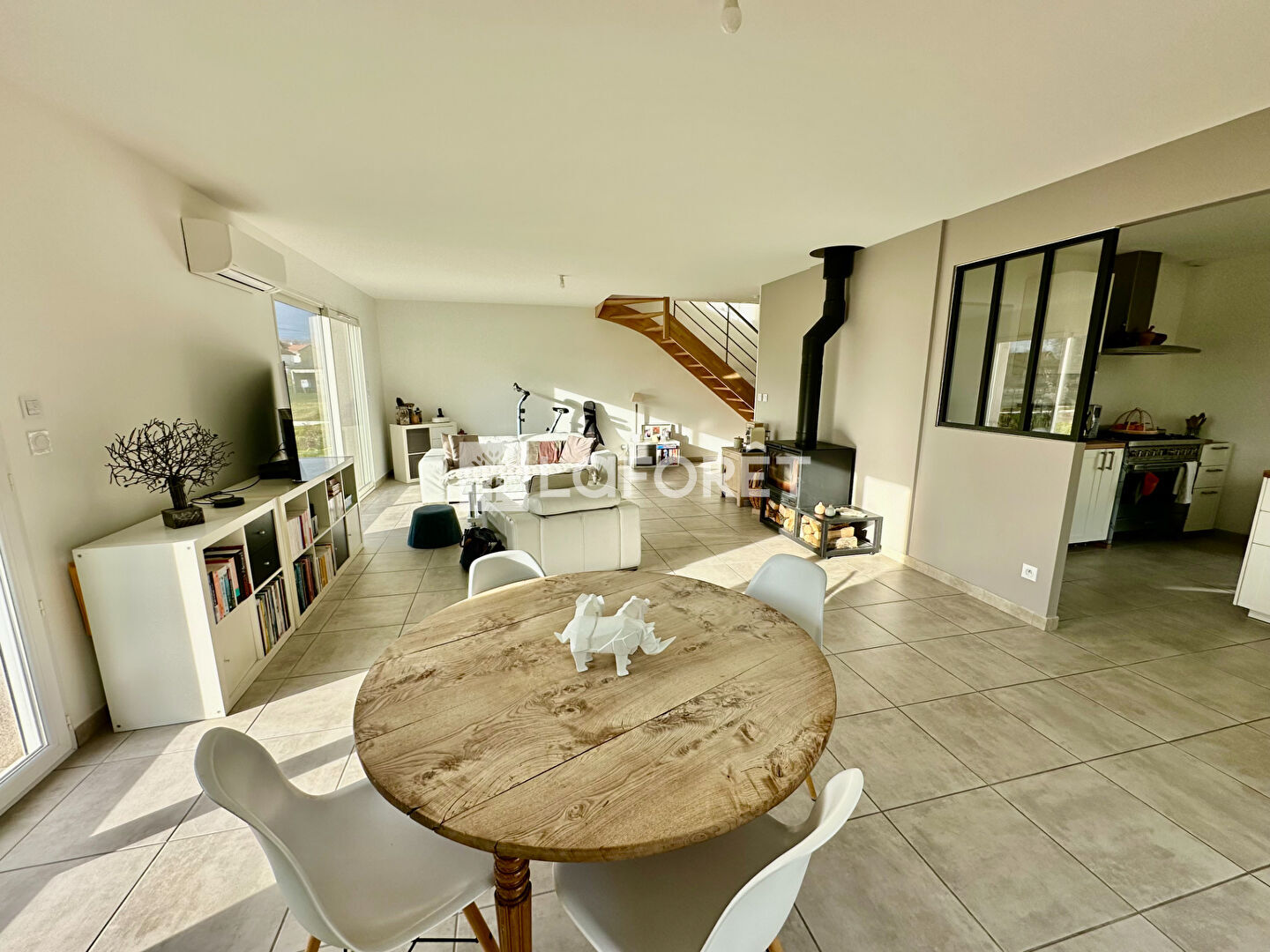 Conçue pour des moments de partage, les pièces à vivre cohabitent en un vaste volume, la pièce principale totalise plus de 50m² et laisse entrer la lumière à toute heure de la journée grâce à ses baies vitrées, faisant ainsi communiquer l'intérieur et l'extérieur.