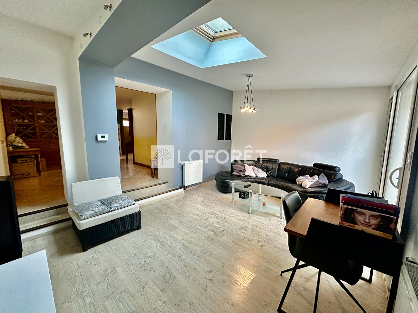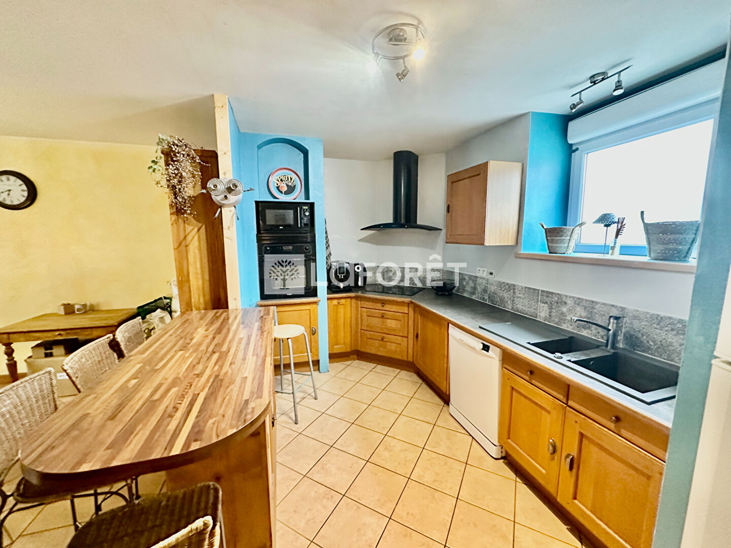Elle offre une grande pièce de vie lumineuse avec cuisine ouverte et salon, parfaite pour partager des moments conviviaux.