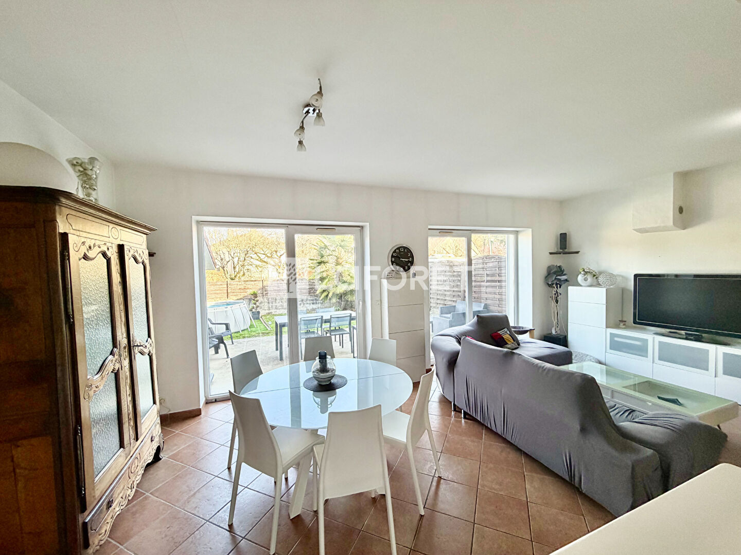 Vous serez immédiatement séduit par son immense pièce de vie lumineuse, véritable coeur de la maison, ouverte sur l'extérieur et donnant directement sur un magnifique jardin clos et arboré de 850 m², parfait pour profiter des beaux jours en toute tranquillité.