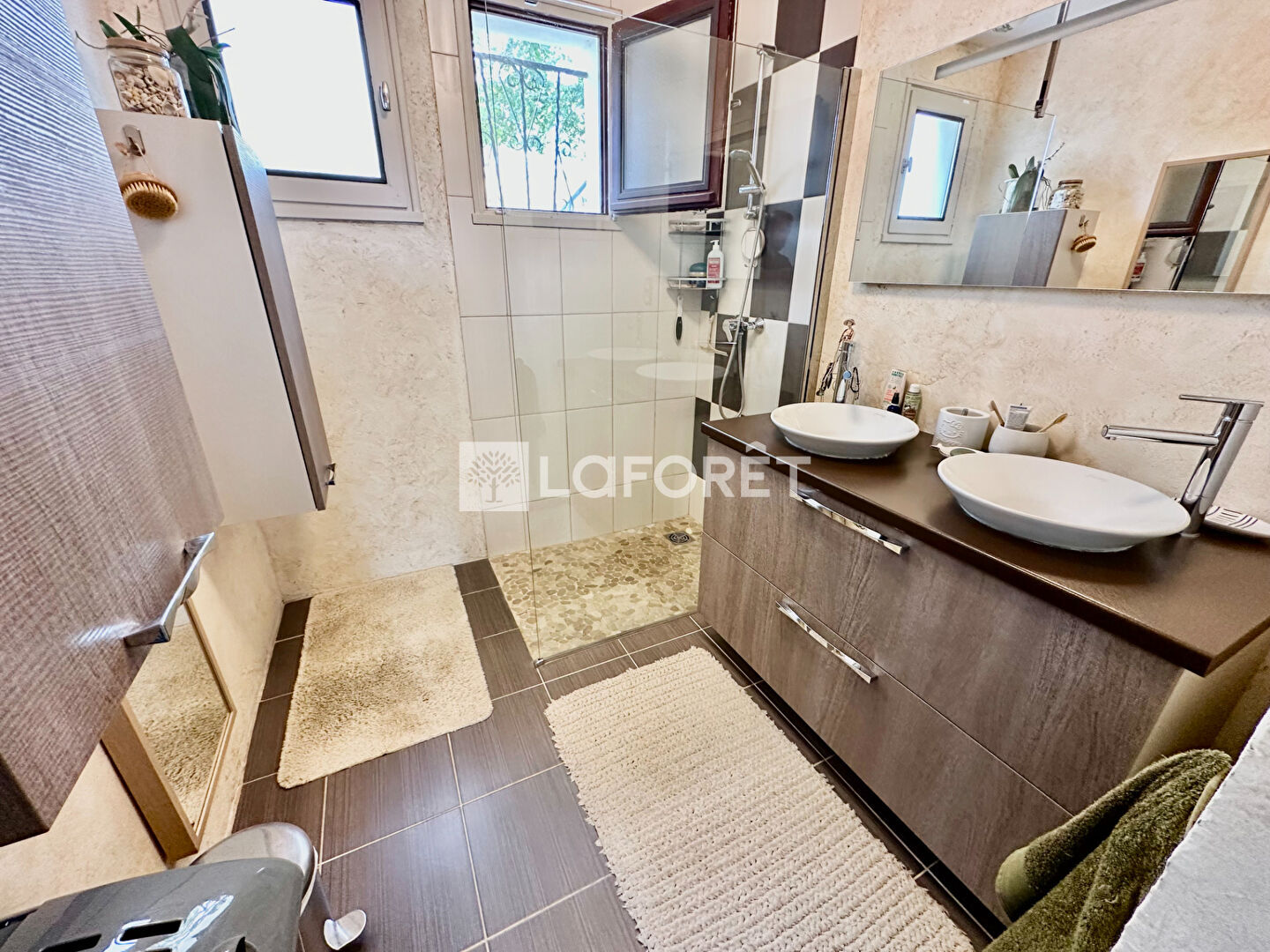 La salle d'eau moderne avec douche à l'italienne.