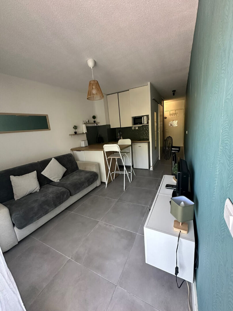 Studio cabine de 21 m² meublé,libre & renové prolongé par une loggia de 5 m², situé dans le quartier recherché du Couchant à La Grande-Motte. Implanté au 1er étage d'une résidence bien entretenue (sans ascenseur), il bénéficie d'un emplacement idéal, à proximité immédiate des commerces et des plages.