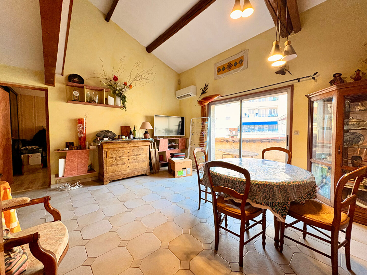 Appartement T3 qui dispose d'un séjour de 28 m² environ, d'une chambre, d'une salle d'eau, d'une cuisine pouvant être ouverte sur le séjour, 2 mezzanine et une chambre sous comble. Le bien dispose d'une CAVE et d'une TERRASSE de 35m². Climatisation réversible.