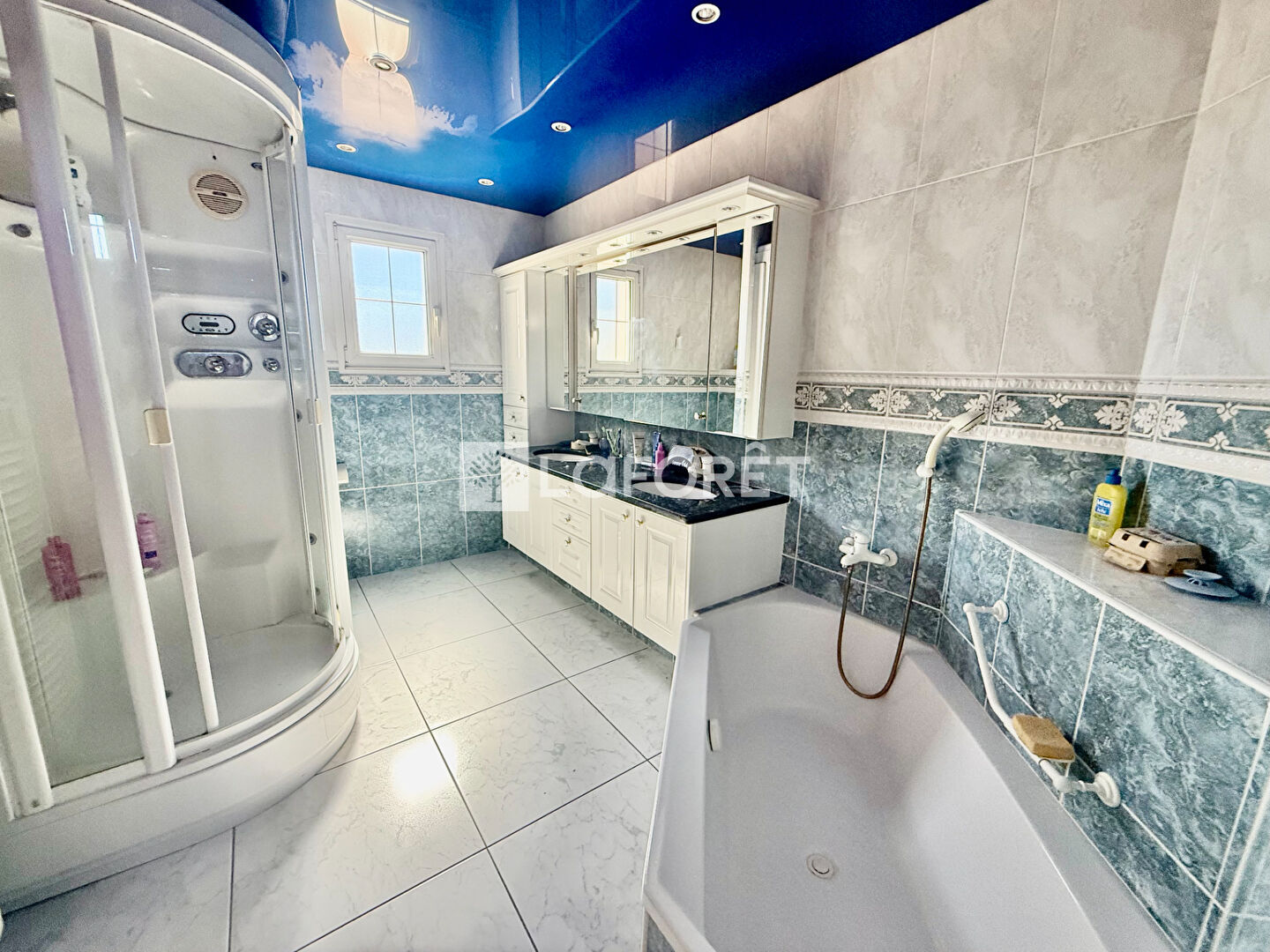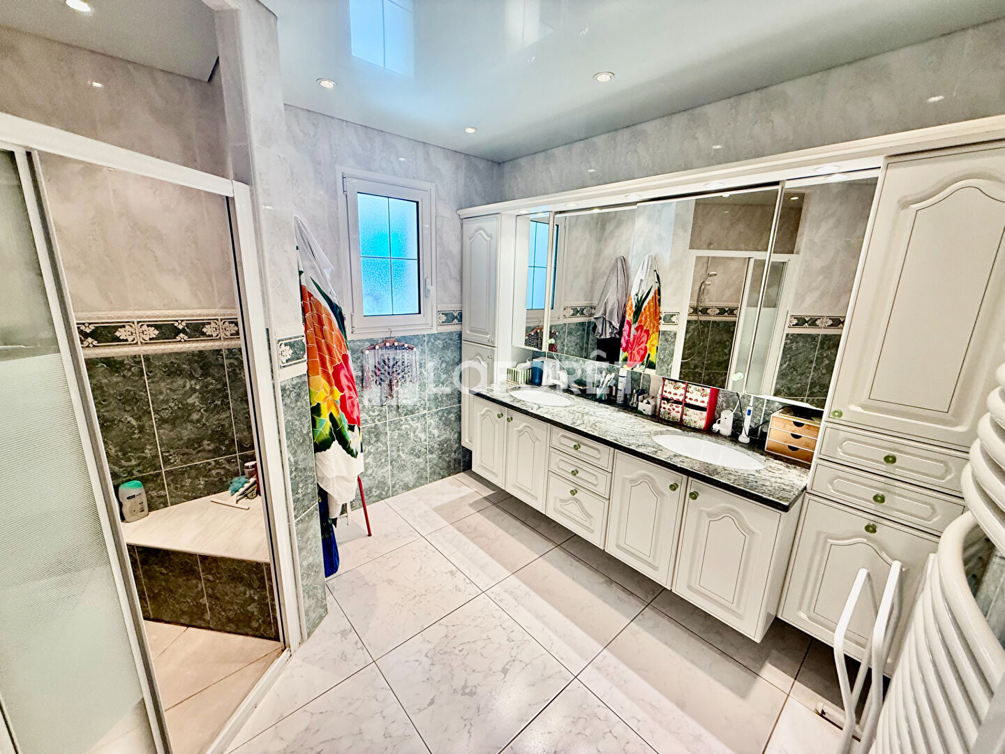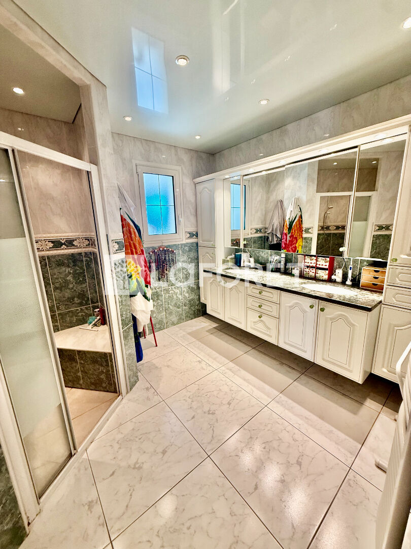 Côté confort, la maison dispose de prestations haut de gamme : chauffage au sol avec pompe à chaleur réversible, menuiseries aluminium à galandage, volets roulants motorisés aspiration centralisée, adoucisseur d'eau, carrelage grand format, et finitions en marbre.