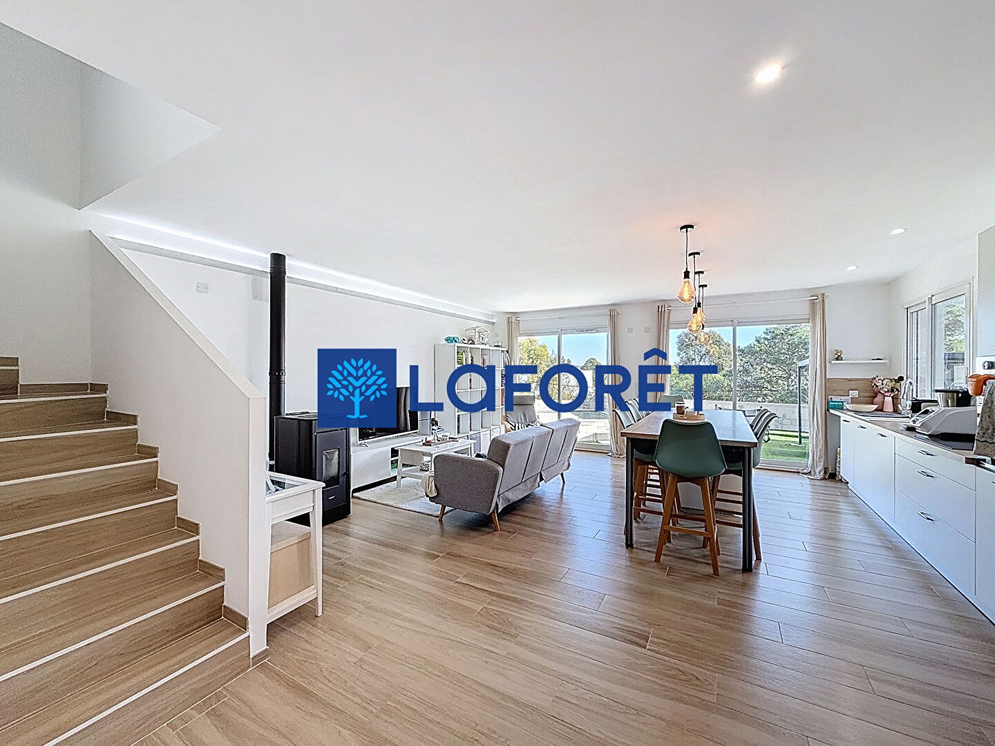 Située à seulement 1,5 km de la mer, moderne et lumineuse, vous trouverez de plain pied une entrée avec placard, un séjour avec cuisine américaine de plus de 40 m² ouvrant sur l'extérieur, une suite parentale avec dressing et salle d'eau. Une buanderie et des WC complètent ce niveau.