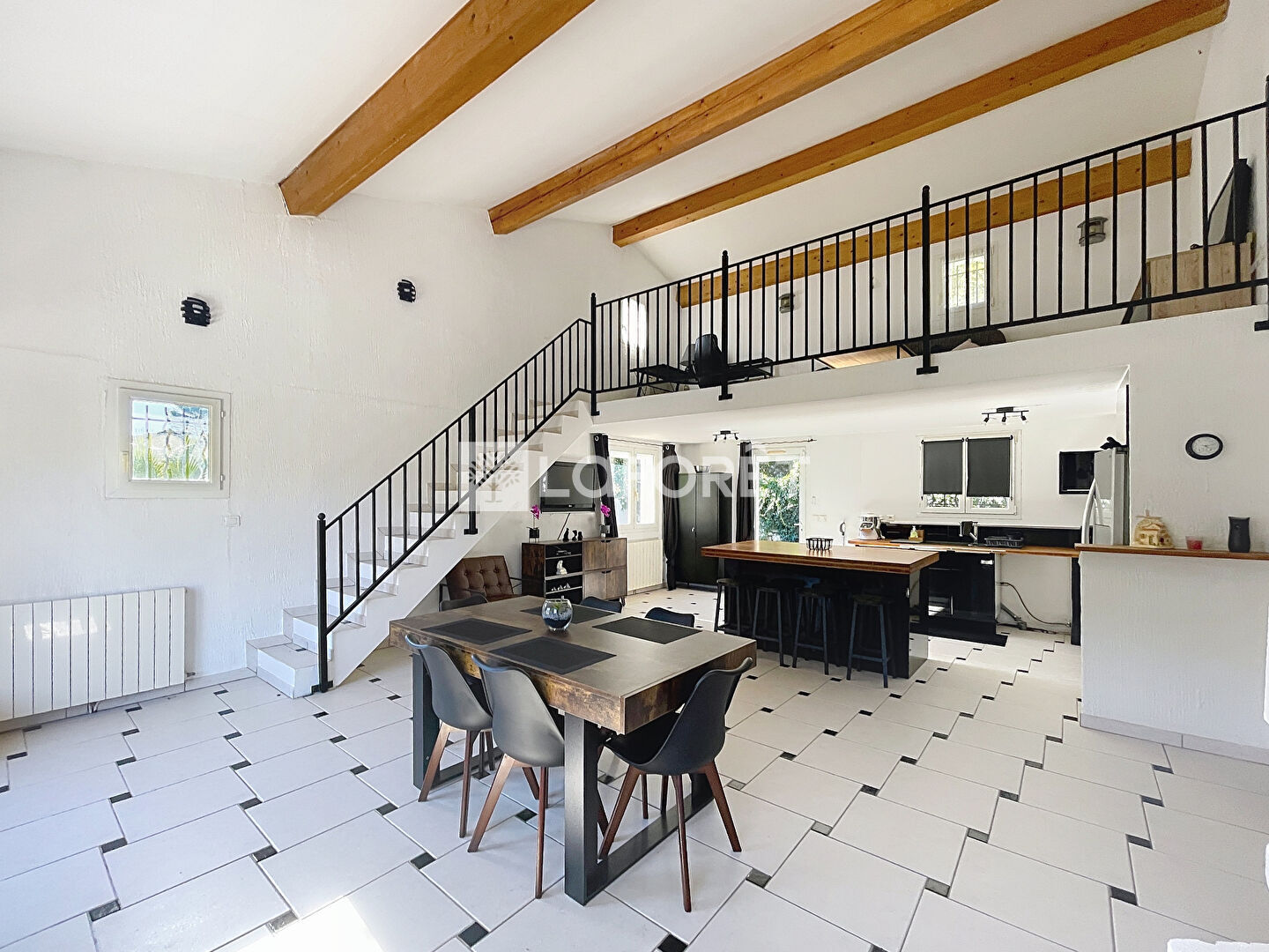 Ce bien lumineux se compose d' un vaste séjour cathédrale avec poutres apparentes, cheminée, et grande hauteur sous plafond, une cuisine ouverte entièrement équipée, 3 belles chambres avec rangements intégrés. Une mezzanine pouvant faire office de 4e chambre ou bureau, une salle de bains et des WC séparés