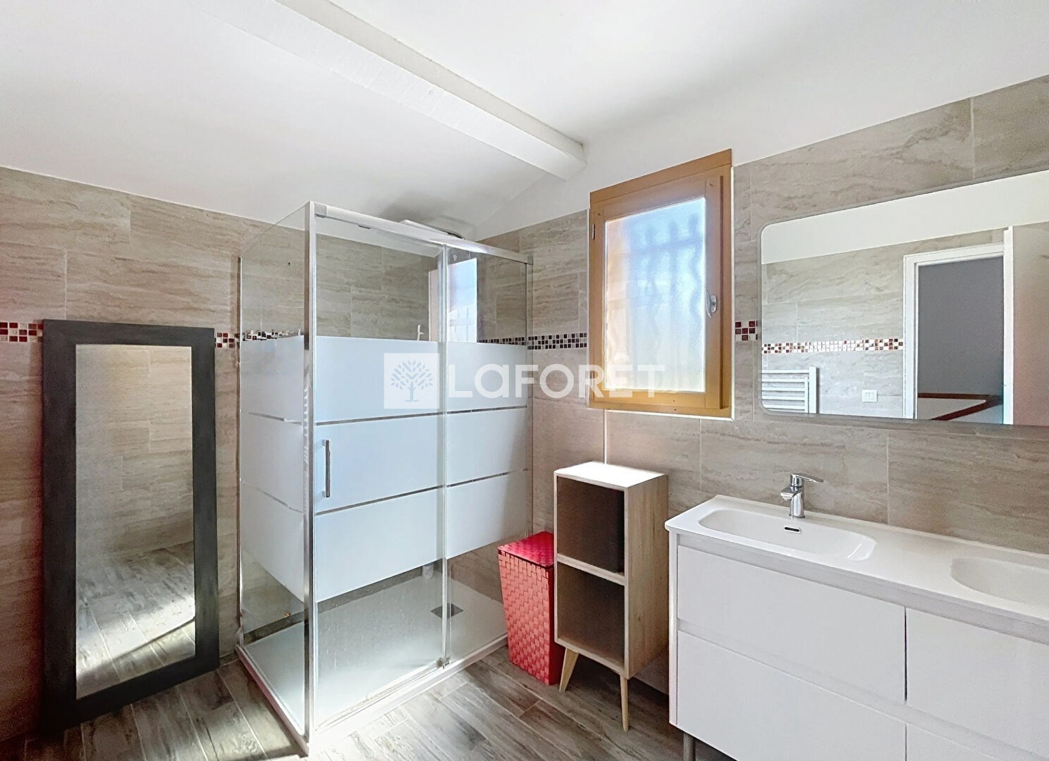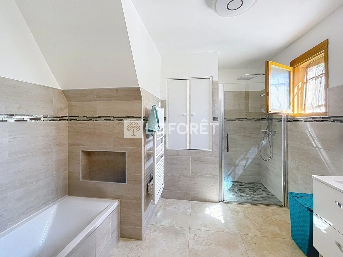 Double séjour lumineux avec belle hauteur sous plafond, Cuisine indépendante équipée et récente, 2 chambres au rez-de-chaussée, avec rangements intégrés, 1 salle de bains + WC séparés. À l'étage : 1 chambre, 1 salle de bains avec WC