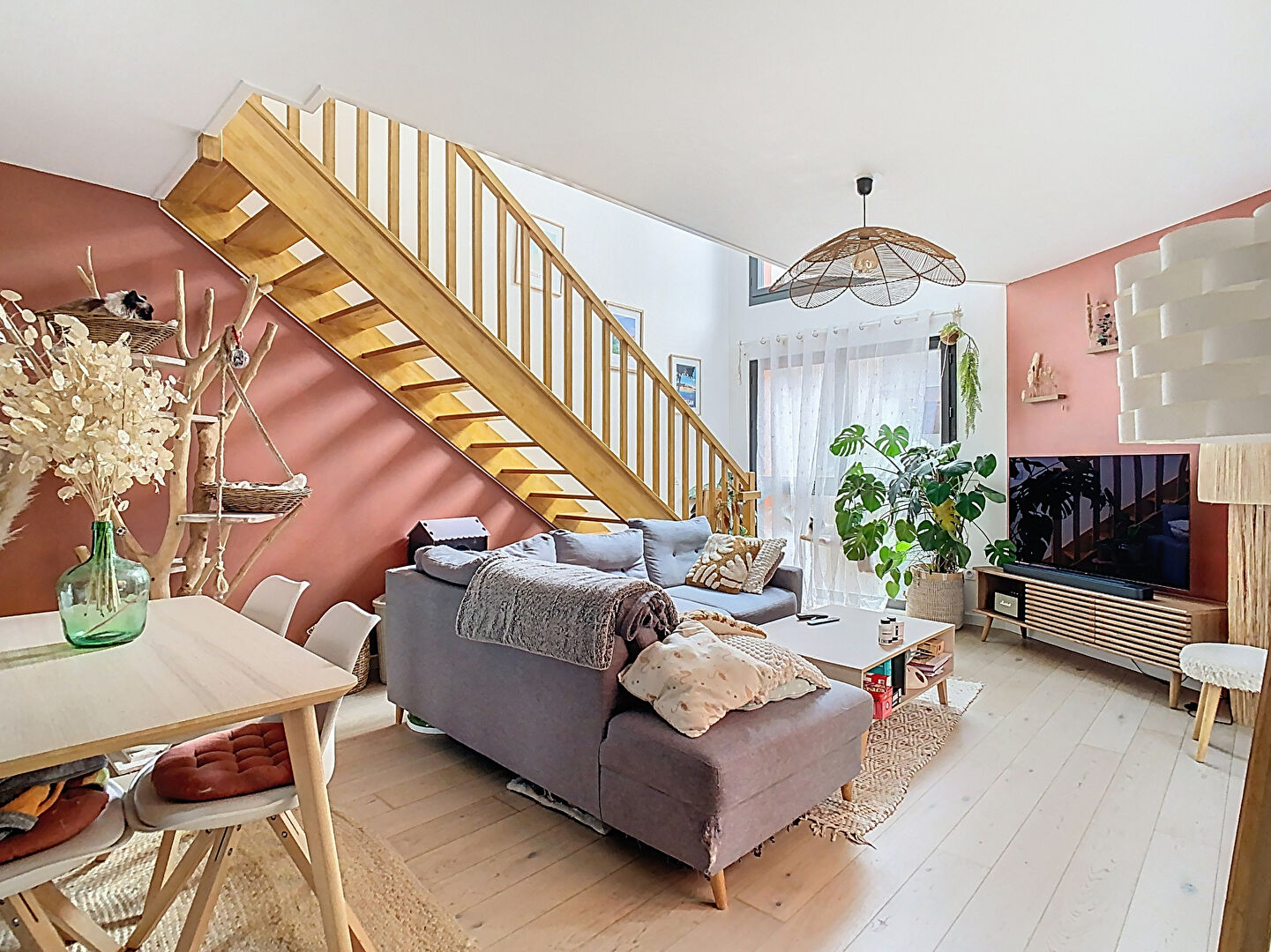 À l'étage, le coin nuit accueille deux chambres agréables, propices au calme et au repos, ainsi qu'une salle de bains fonctionnelle. L'ensemble bénéficie d'une atmosphère douce et harmonieuse, parfaitement adaptée à une vie urbaine confortable.