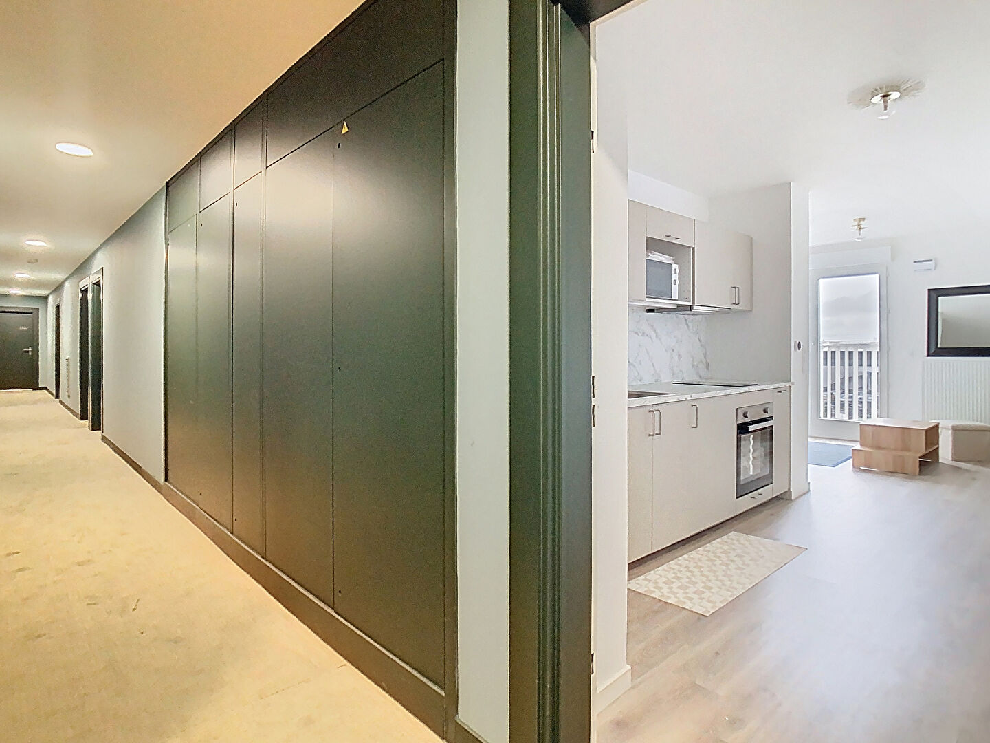 Appartement de type 1 comprenant une belle pièce de vie de près de 25m² avec cuisine américaine équipée et donnant sur un balconnet et une salle d'eau très confortable de 6m².