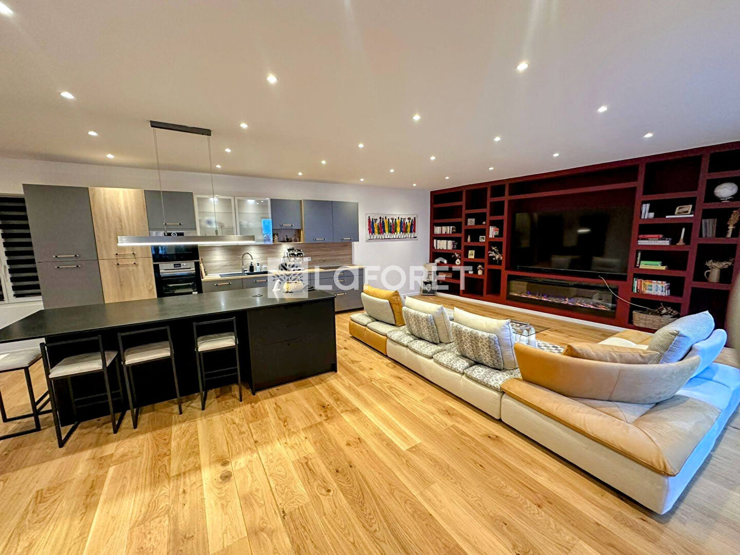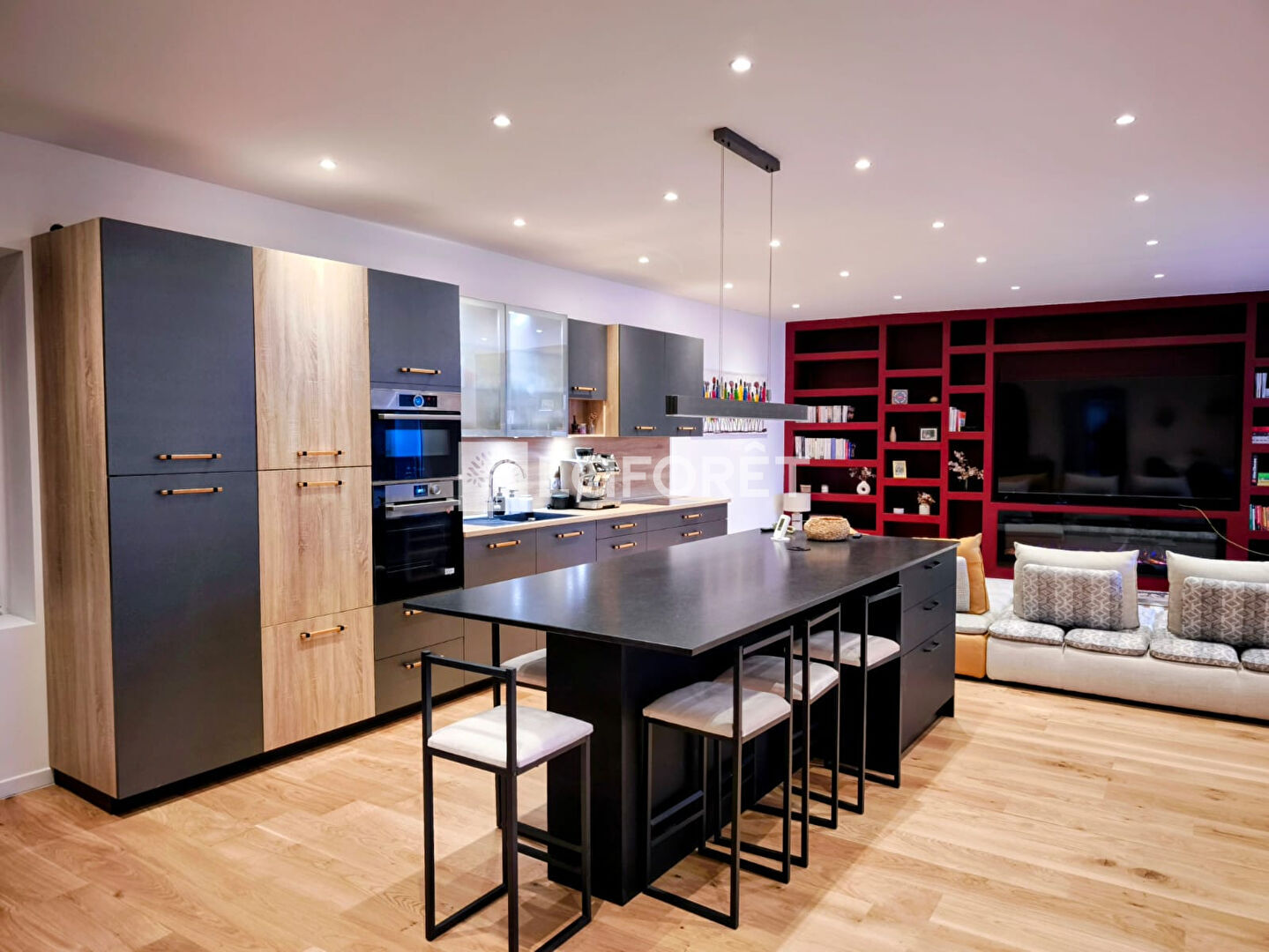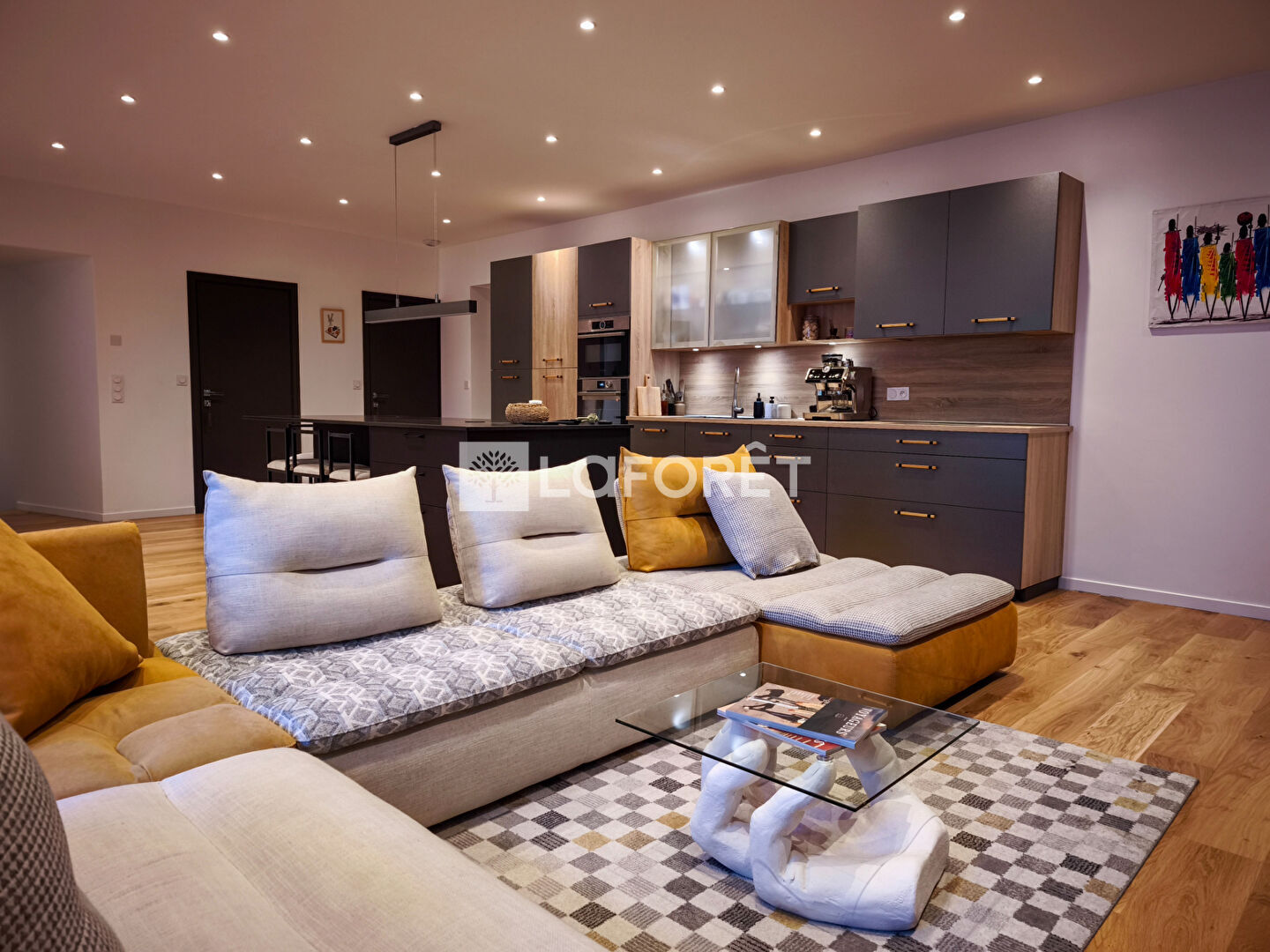 -Cuisine moderne ouverte sur un vaste salon-séjour lumineux, idéal pour recevoir