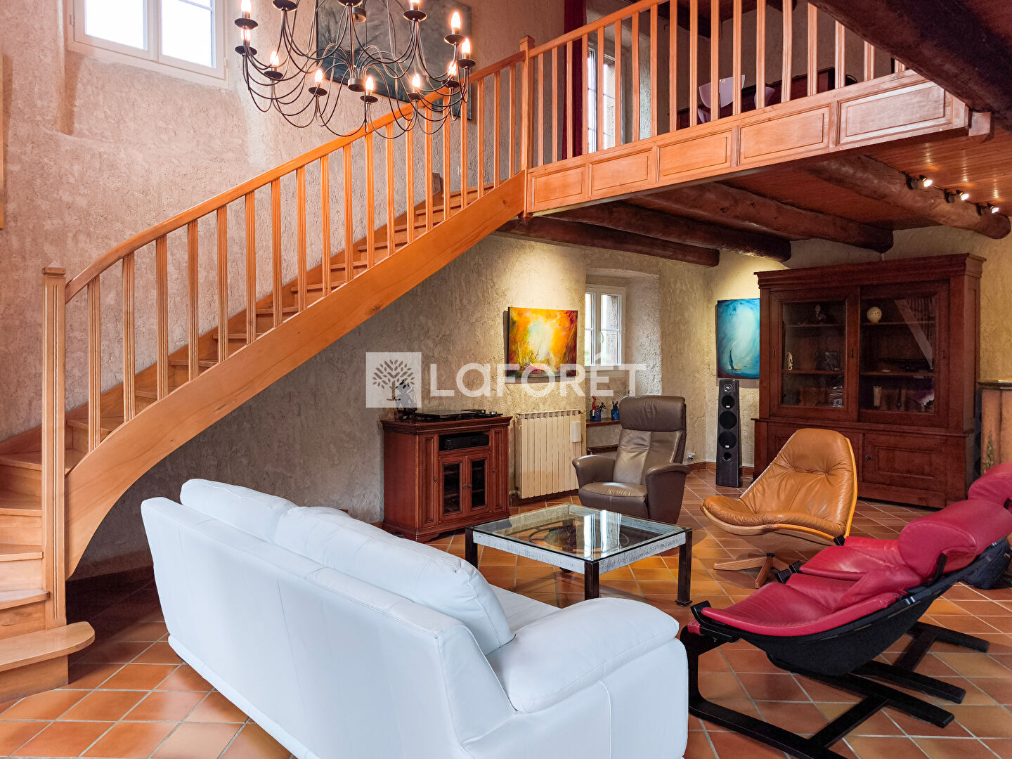 -Un salon/séjour « cathédrale » spacieux et lumineux, doté d'une magnifique cheminée avec un poêle à bois Jotul, idéal pour les moments en famille