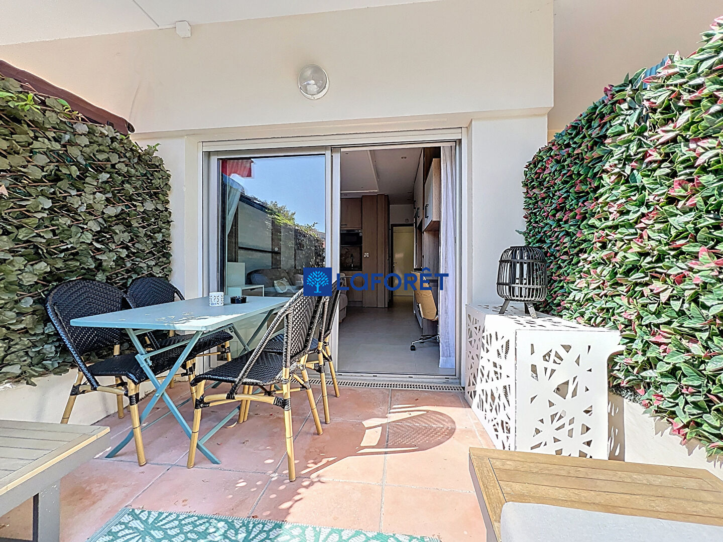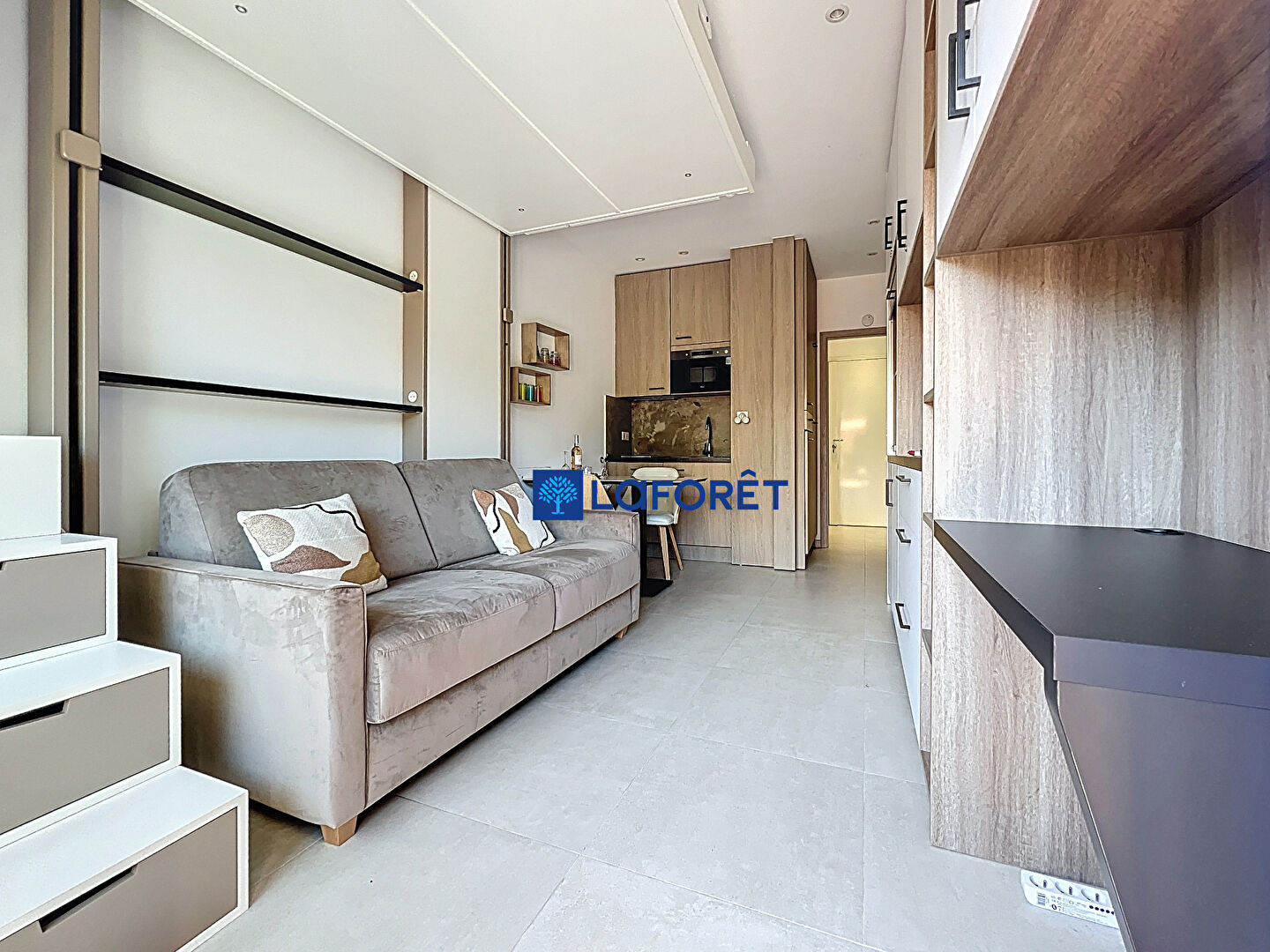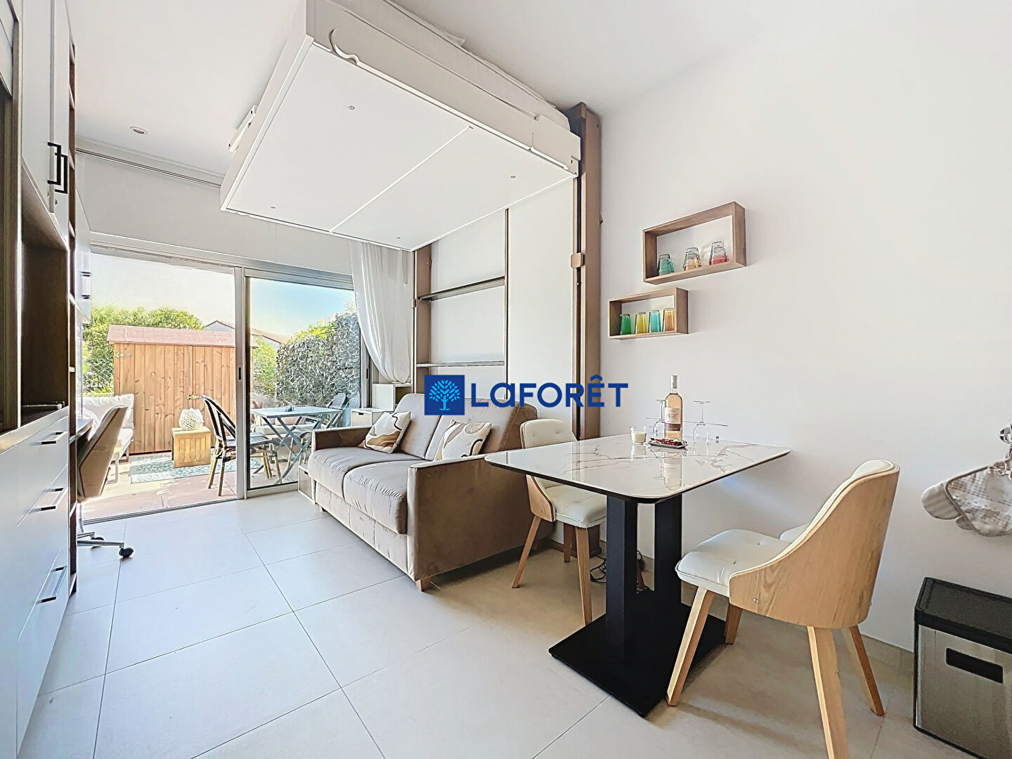 L'intérieur se compose Une entrée optimisée, une pièce de vie baignée de lumière, avec cuisine contemporaine entièrement équipée, s'ouvrant harmonieusement sur une grande terrasse privative et intime, une salle d'eau avec WC, et une conception sur-mesure avec de nombreux rangements.