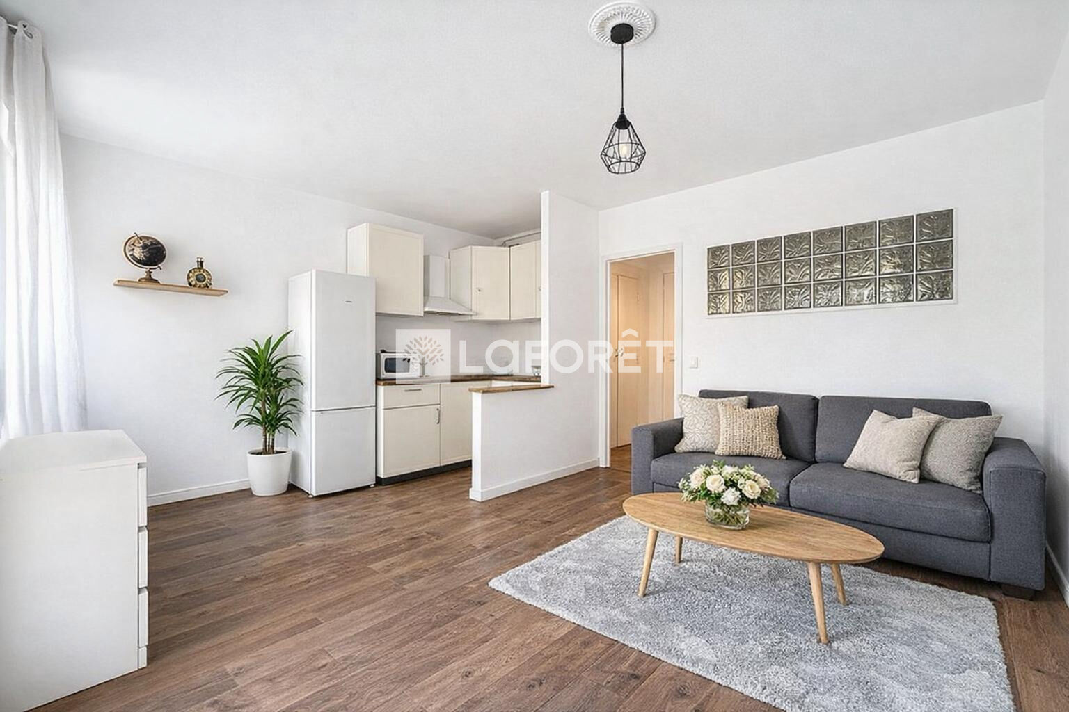 Il se compose d'une belle entrée avec rangements et un espace buanderie discrètement intégré, d'un agréable séjour lumineux avec cuisine américaine, un balcon exposé Sud-Ouest, offrant une vue sur l'intérieur de la copropriété (paisible) et une salle d'eau avec WC complète ce bien.